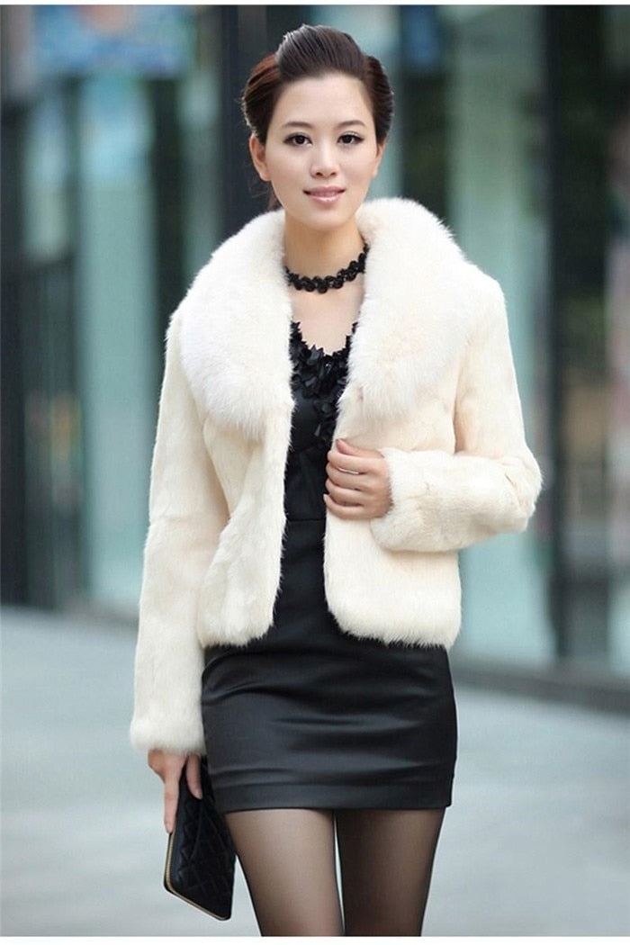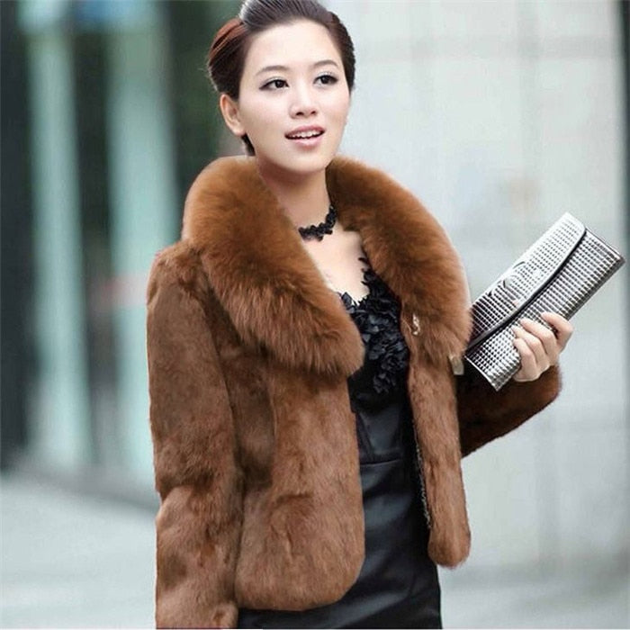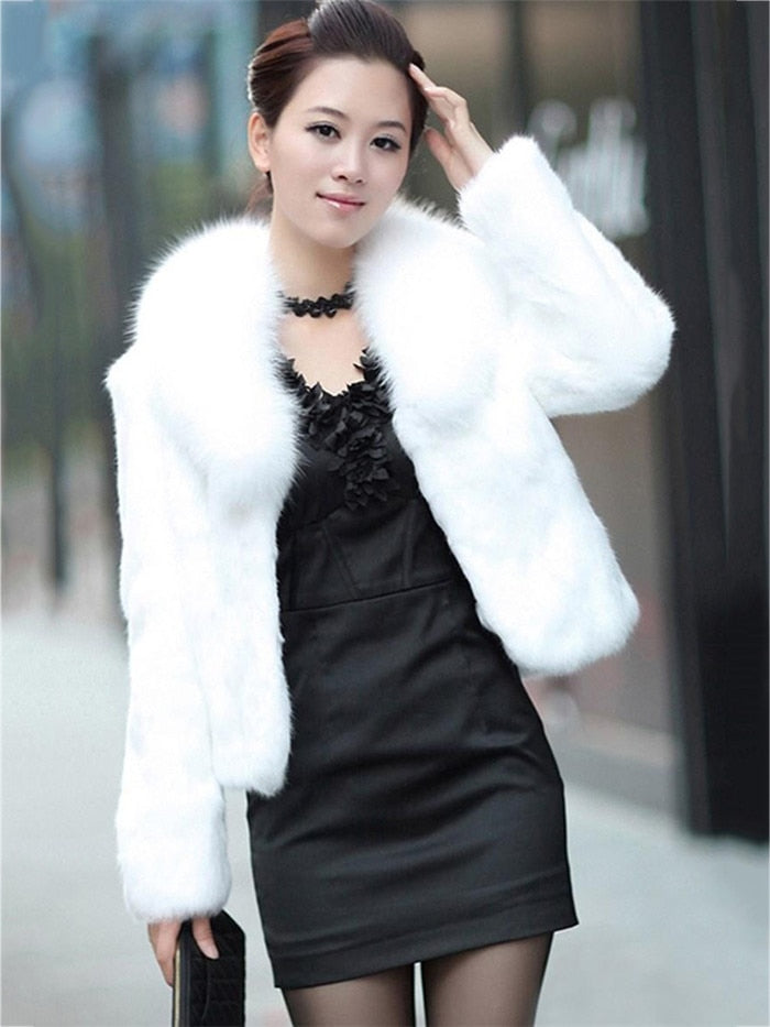 Introducing our High Quality Winter Warm Fluffy Faux Fur Coats Jackets for Women, designed to keep you cozy and fashionable during the chilly months. This stunning coat features a luxurious fluffy faux fur material that not only provides warmth but also adds a touch of elegance to your winter wardrobe. The standout feature of this coat is its chic faux fox fur collar, which enhances its overall appeal and provides additional warmth around the neck area.
