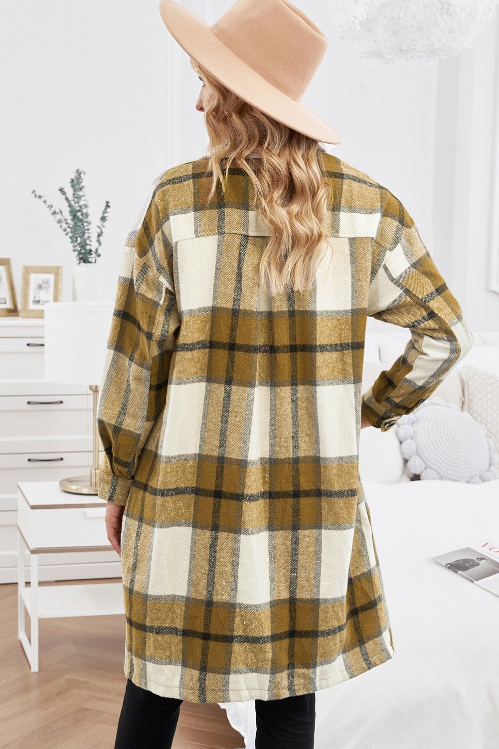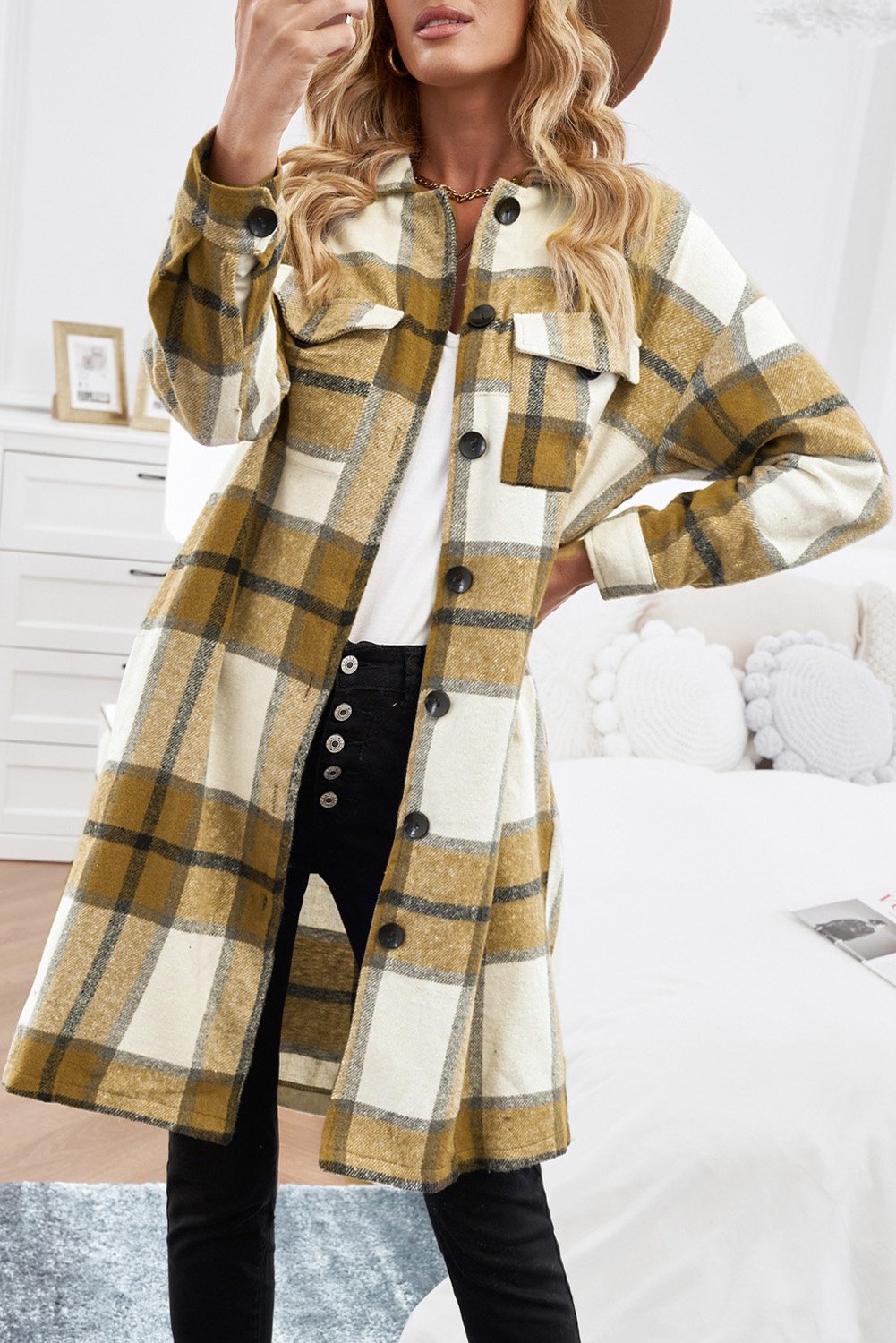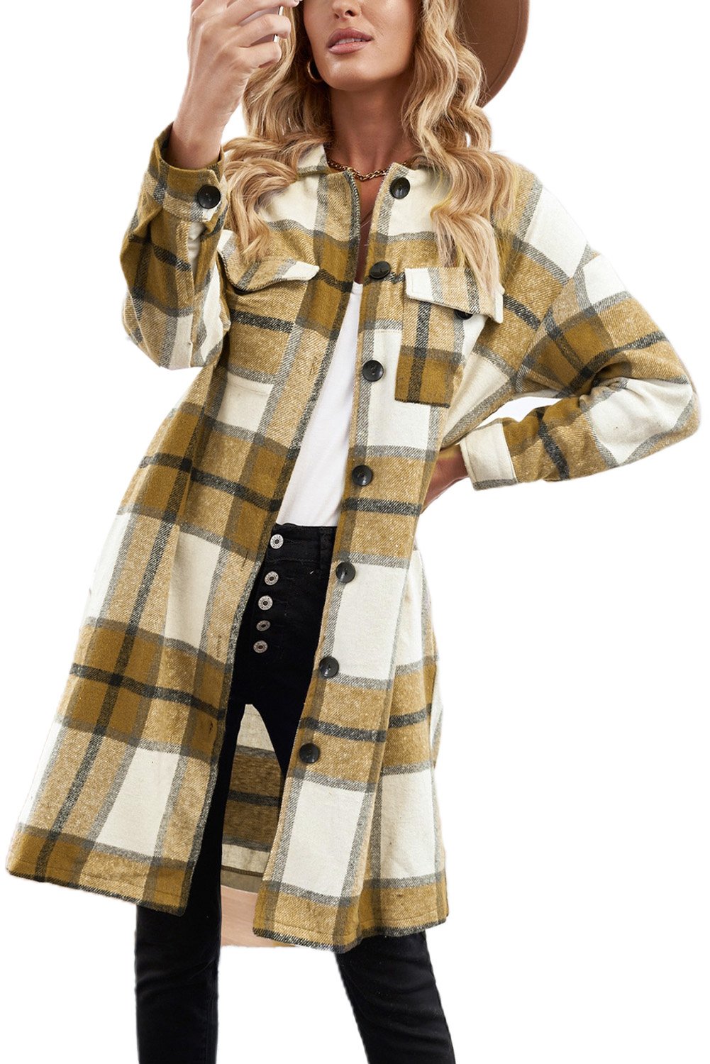 The Khaki Long Flannel Plaid Shirt features a relaxed silhouette that allows for easy movement and comfort. The full-button closure adds a classic element, while the two breast pockets provide functionality and style. This shirt is perfect for those who appreciate both comfort and fashion in their outerwear.