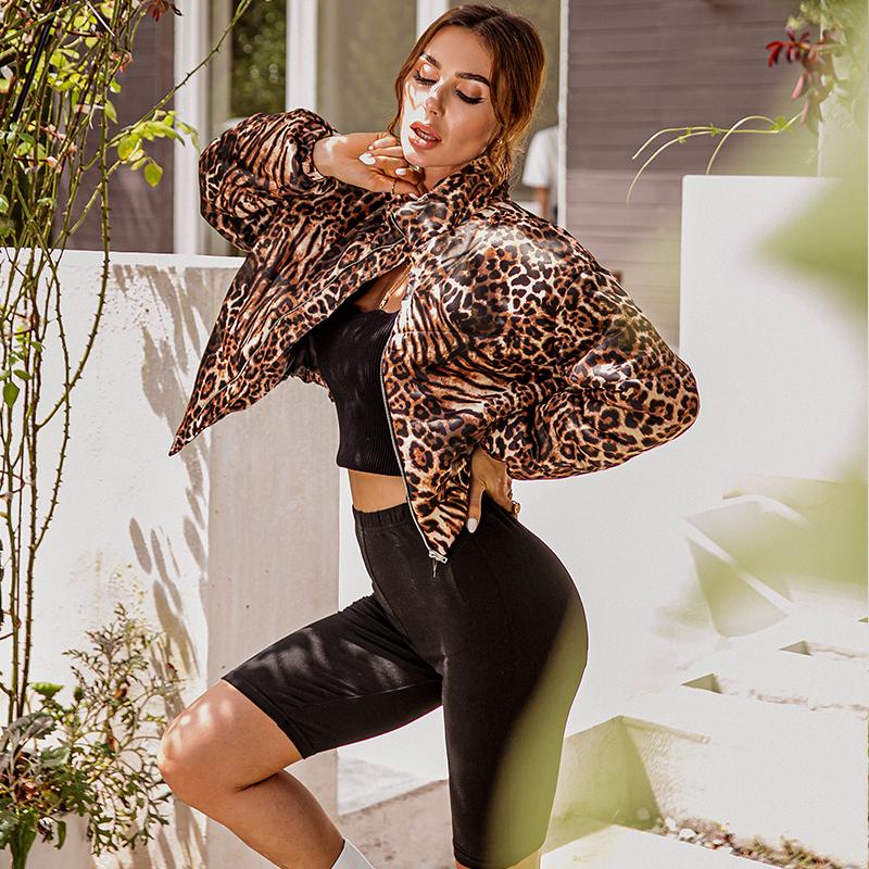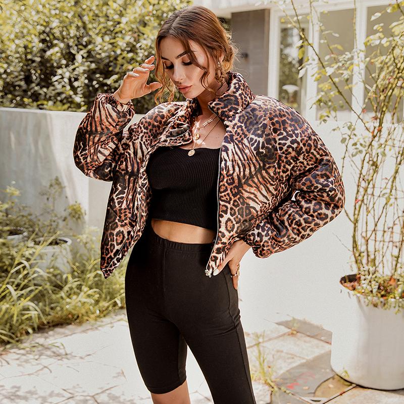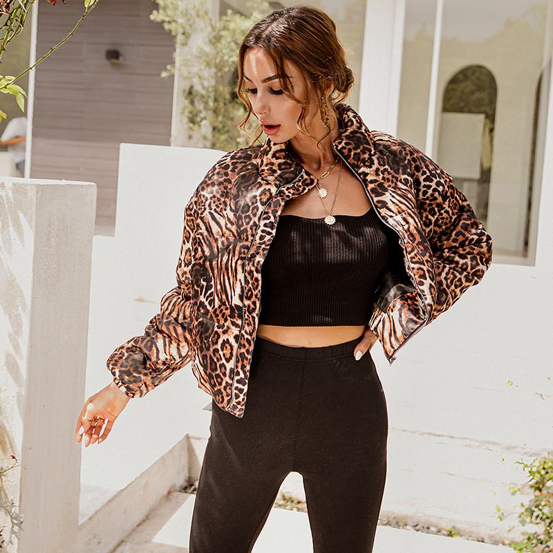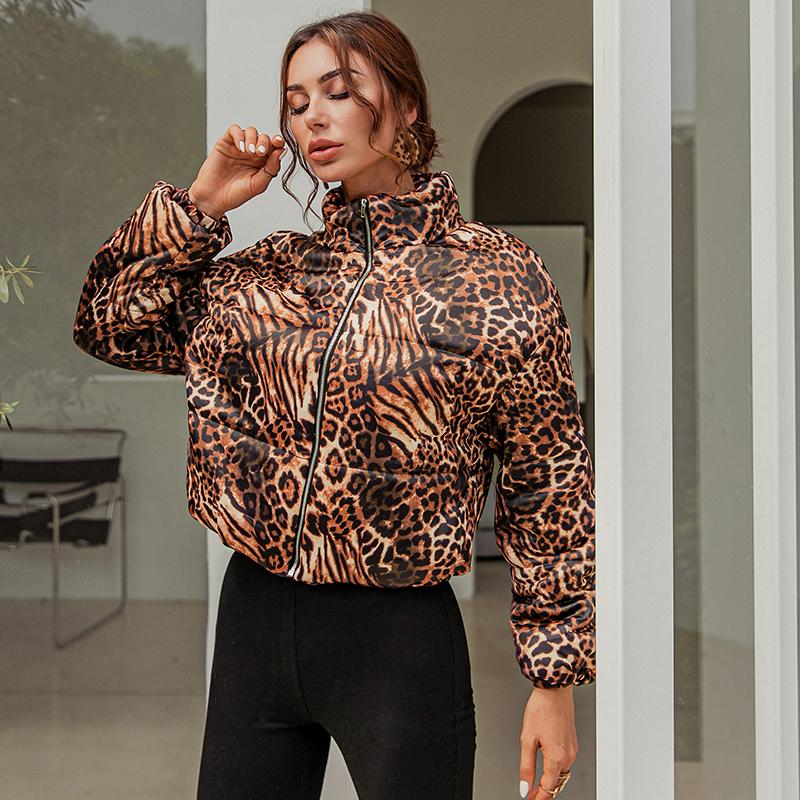 Dropship Leopard female basic jacket coat Women winter sexy manteau femme warm