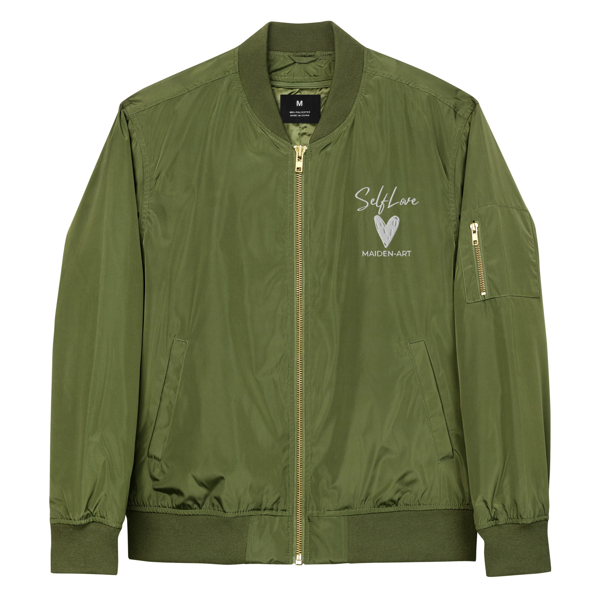 Choosing the Premium Self Love bomber jacket means opting for a stylish, sustainable, and functional piece of clothing. Its classic design, combined with modern features like the utility pocket and premium zipper, makes it a must-have for any wardrobe. Whether you're looking for a jacket to wear on a casual outing or something to keep you warm during outdoor activities, this bomber jacket is the perfect choice.