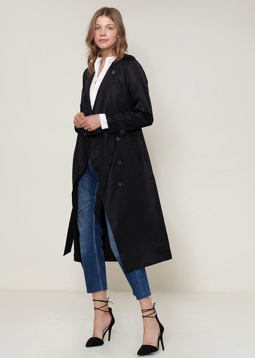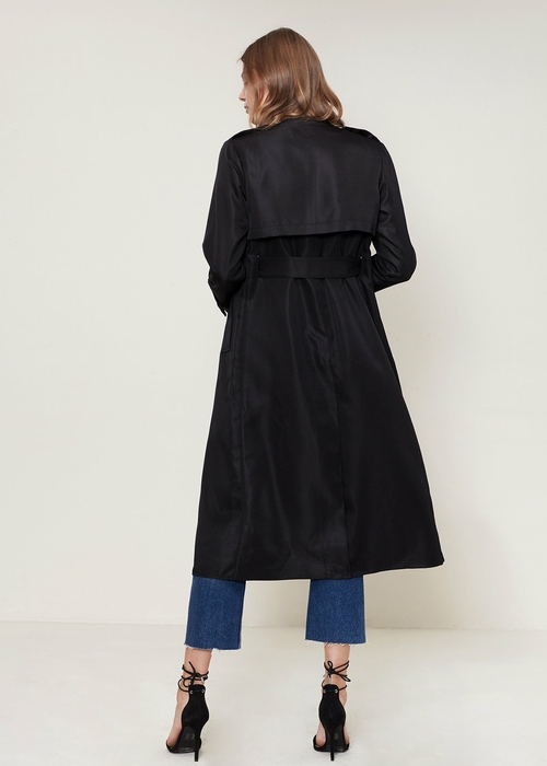 Dropship Ro & De Tie Waist Maxi Trench Coat In Black