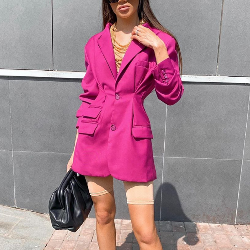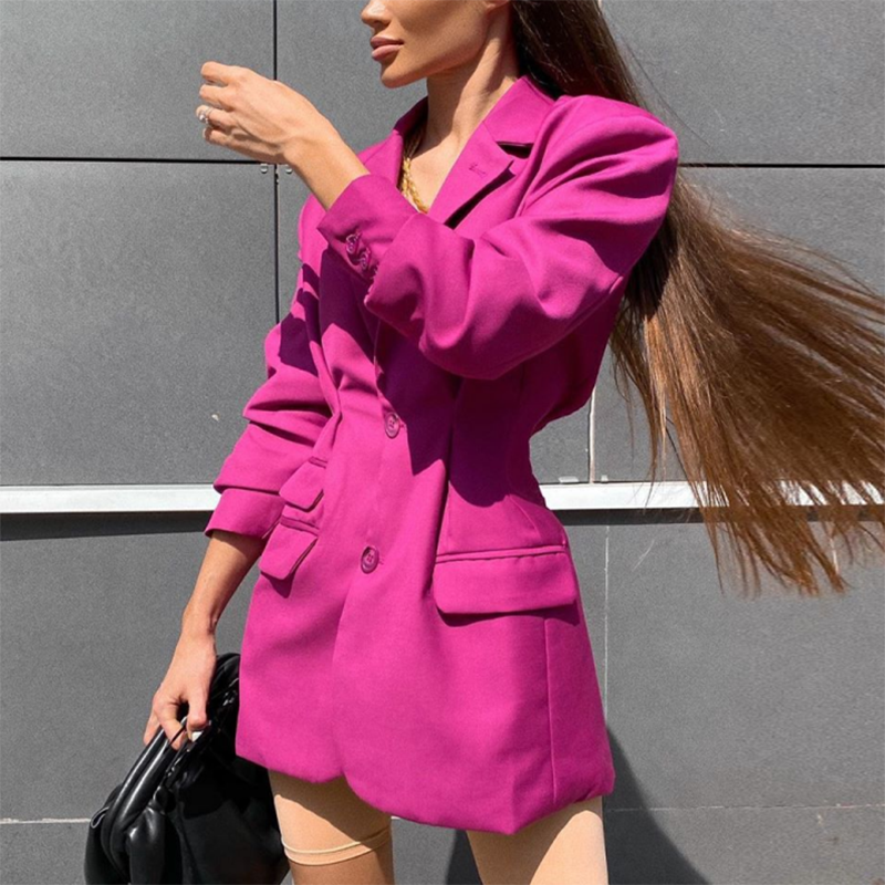 This blazer is designed for the modern woman who values both style and functionality. Its casual yet sophisticated style makes it suitable for various occasions, whether you're at the office, attending a business event, or enjoying a night out. The rose red color adds a pop of vibrancy to your ensemble, ensuring you stand out in any crowd.