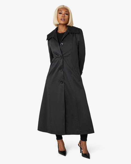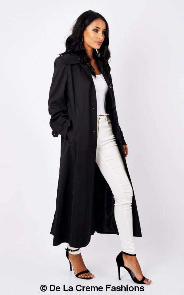 The longline design of this mac coat offers a flattering silhouette that complements various body types. Its full-length cut provides ample coverage, making it perfect for those cooler spring and summer days. The coat's sleek lines and tailored fit ensure that you look polished and put-together, no matter the occasion.