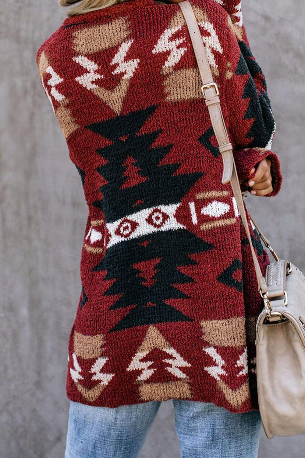 The Winter Red Moraga Pocketed Aztec Cardigan is not only stylish but also practical. The pockets are perfect for keeping your hands warm or storing small essentials like your phone or keys. This feature adds to the overall convenience of the cardigan, making it a go-to choice for everyday wear.