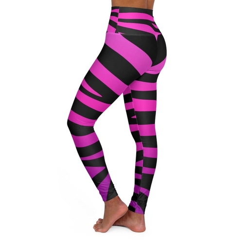 Upgrade your activewear collection with our High Waisted Yoga Leggings in purple and black stripes. Experience the perfect blend of style, comfort, and functionality that will elevate your workout experience.