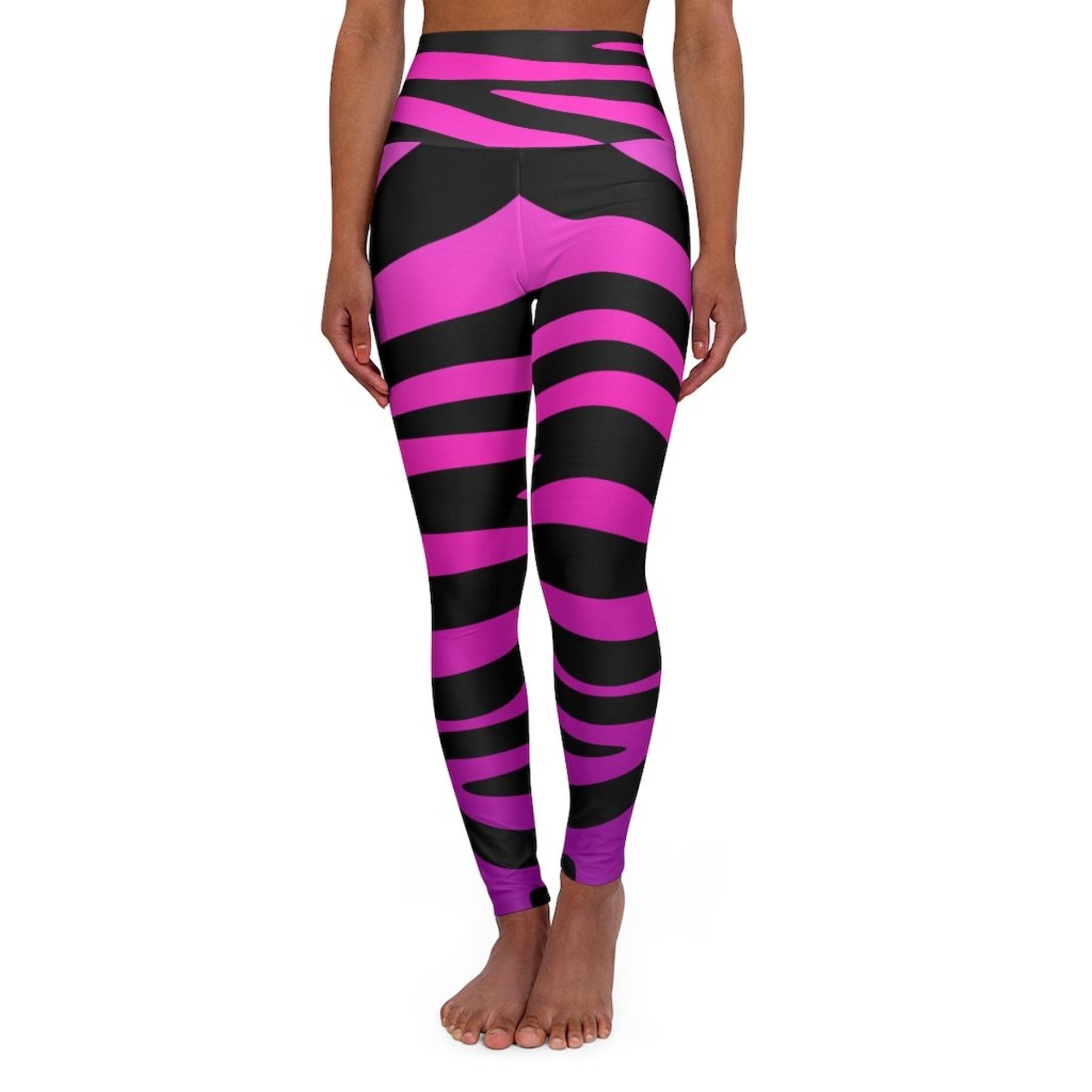 High Waisted Yoga Leggings - Purple and Black Stripes