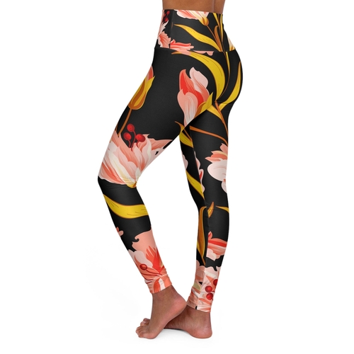 In summary, our Women's High Waist Fitness Leggings in Pink and Gold Floral are the perfect combination of style, comfort, and functionality. With their flattering fit, breathable fabric, and versatile design, they are a must-have for anyone looking to enhance their workout wardrobe.