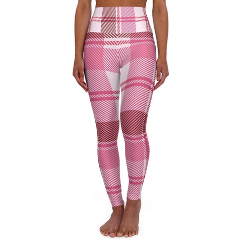 Introducing our Women's High Waist Fitness Leggings in Pink Plaid, the perfect blend of style and functionality for your active lifestyle. These leggings are designed to provide a flattering fit for all body types, ensuring you feel confident and comfortable during your workouts. The high-waisted design not only accentuates your natural curves but also offers excellent support, keeping the leggings securely in place while you move.