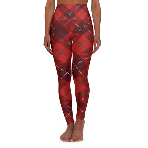 Invest in your fitness wardrobe with our Women's High Waist Fitness Leggings in Red Plaid. Experience the perfect blend of style and performance, and take your workouts to the next level!