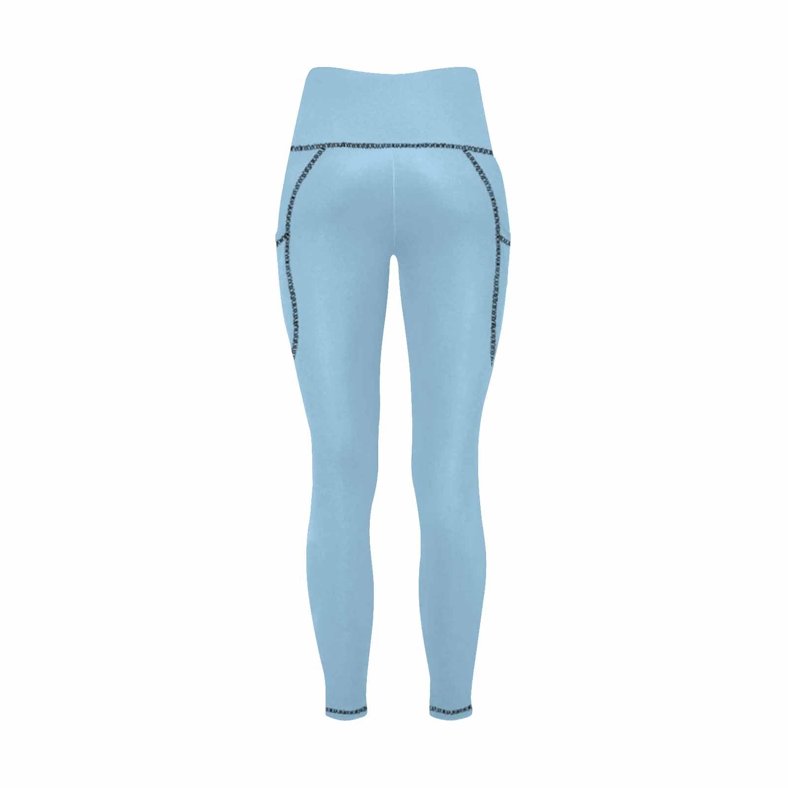 A pair of women's cornflower blue leggings with pockets, showcasing a stylish and functional design suitable for fitness and casual wear.