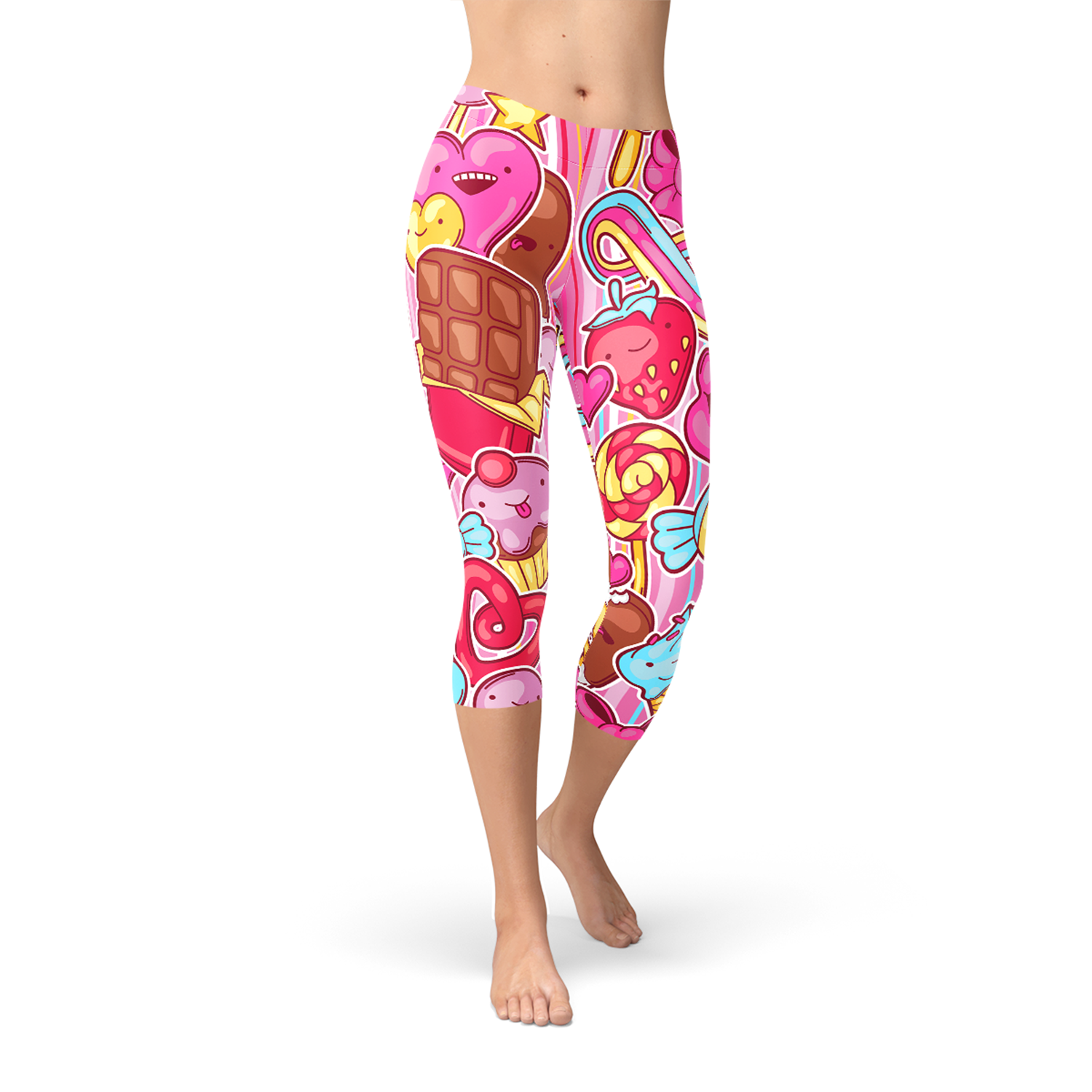 Get your Womens Pink Candy Kawaii Capri Legging today and elevate your workout wardrobe with this trendy and stylish addition!