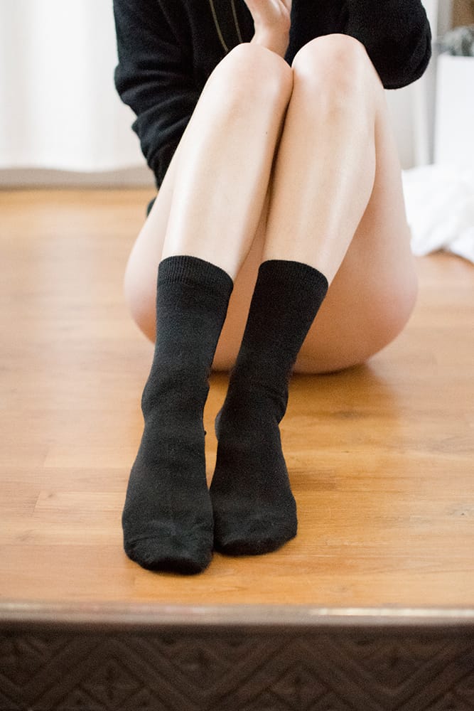 Chaussettes en laine fines et chaudes, idéales pour l'hiver, montrant leur texture douce et élégante.