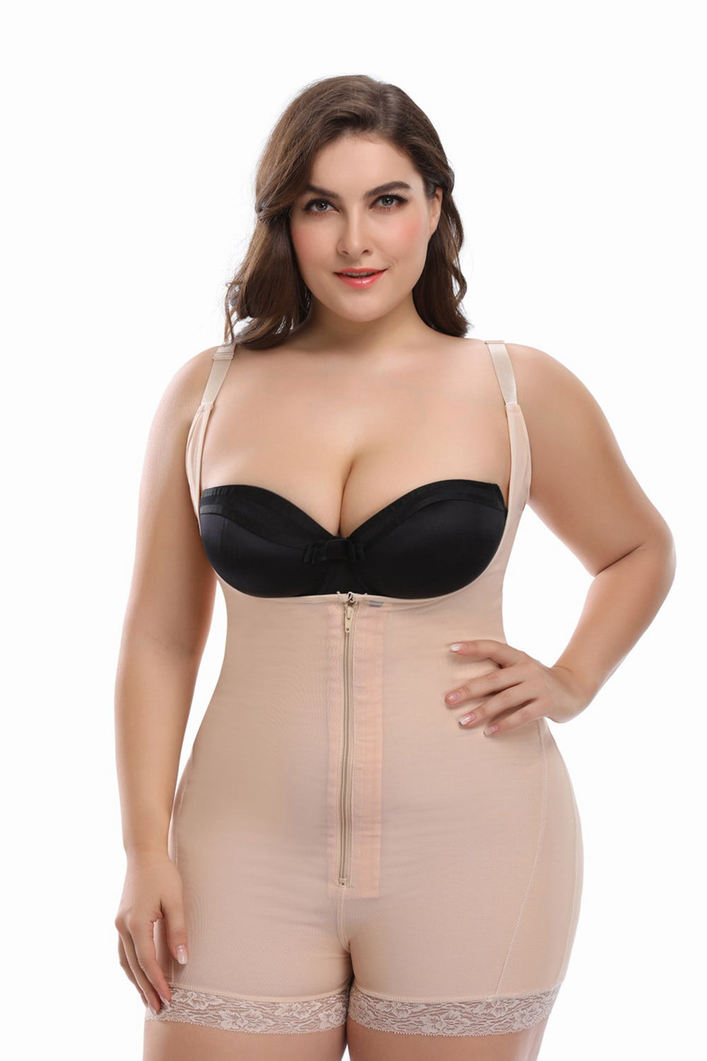 Lace Trim Zip-Up Under-Bust Shaping Bodysuit showcasing elegant lace details and a convenient zipper.