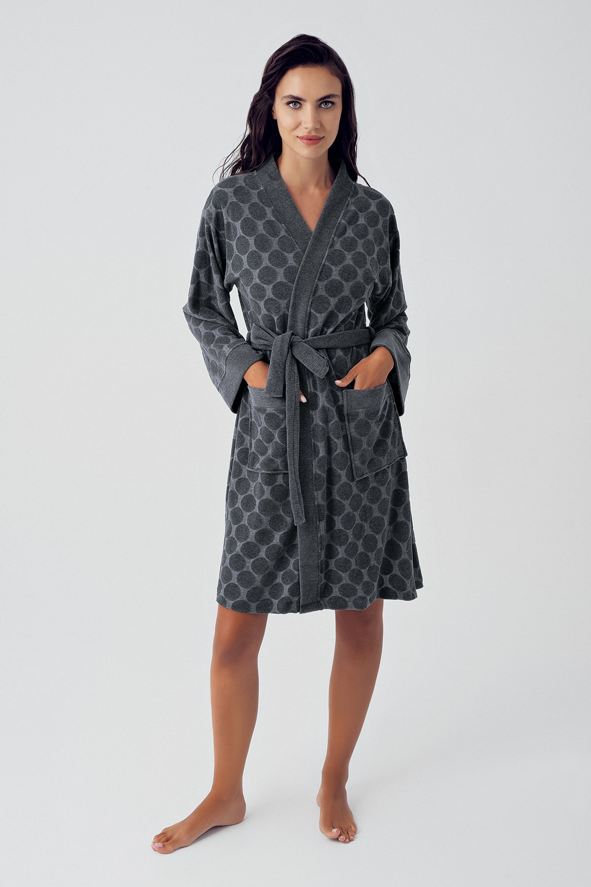 The anthracite color of the Shopymommy robe adds a touch of elegance to your loungewear. Its chic design makes it suitable for various occasions, whether you're hosting friends or simply enjoying a quiet evening at home. The robe's short length is perfect for warmer weather, while still providing enough coverage for comfort.