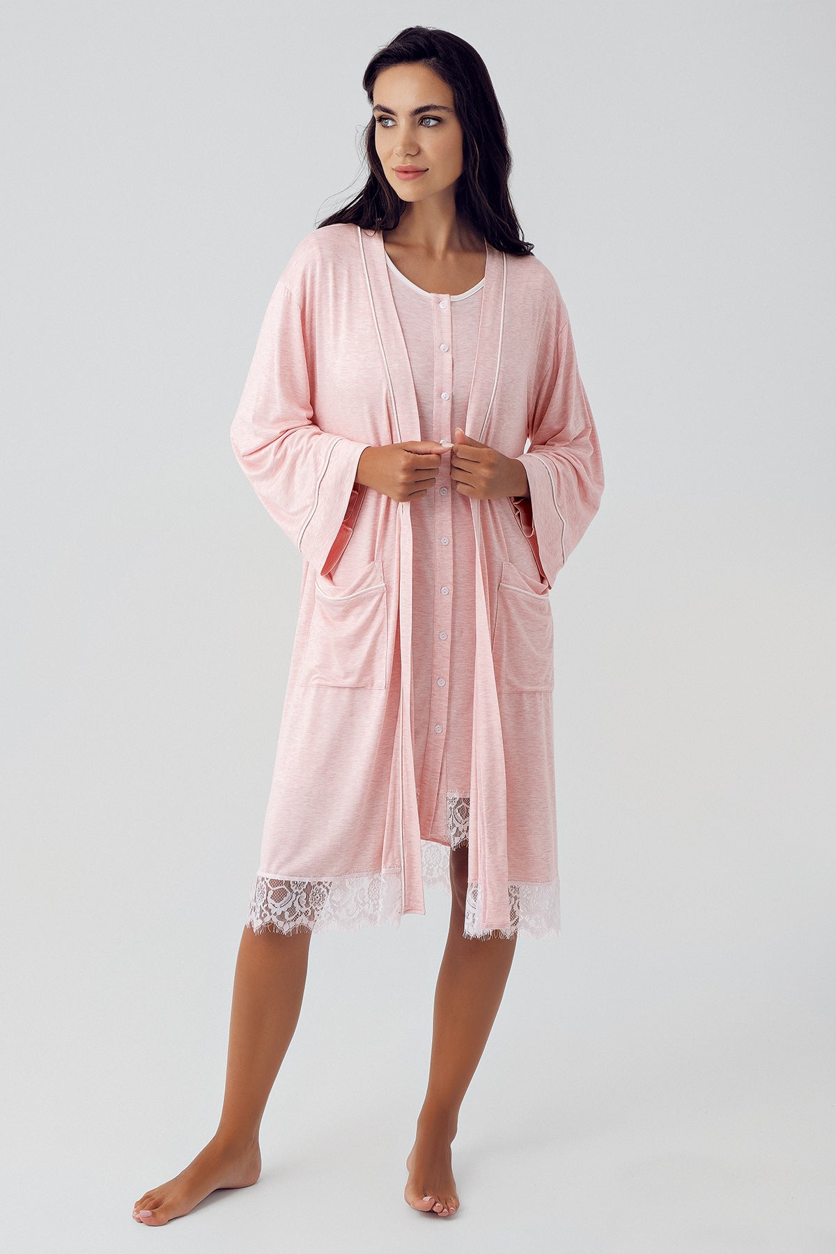The Shopymommy 15403 Melange Lace Maternity & Nursing Nightgown with Robe is designed with the modern mother in mind. This exquisite nightgown combines comfort, style, and practicality, making it an essential addition to your maternity wardrobe. Crafted from the highest quality organic fabric, this nightgown ensures that you feel comfortable and healthy during your pregnancy and nursing journey.