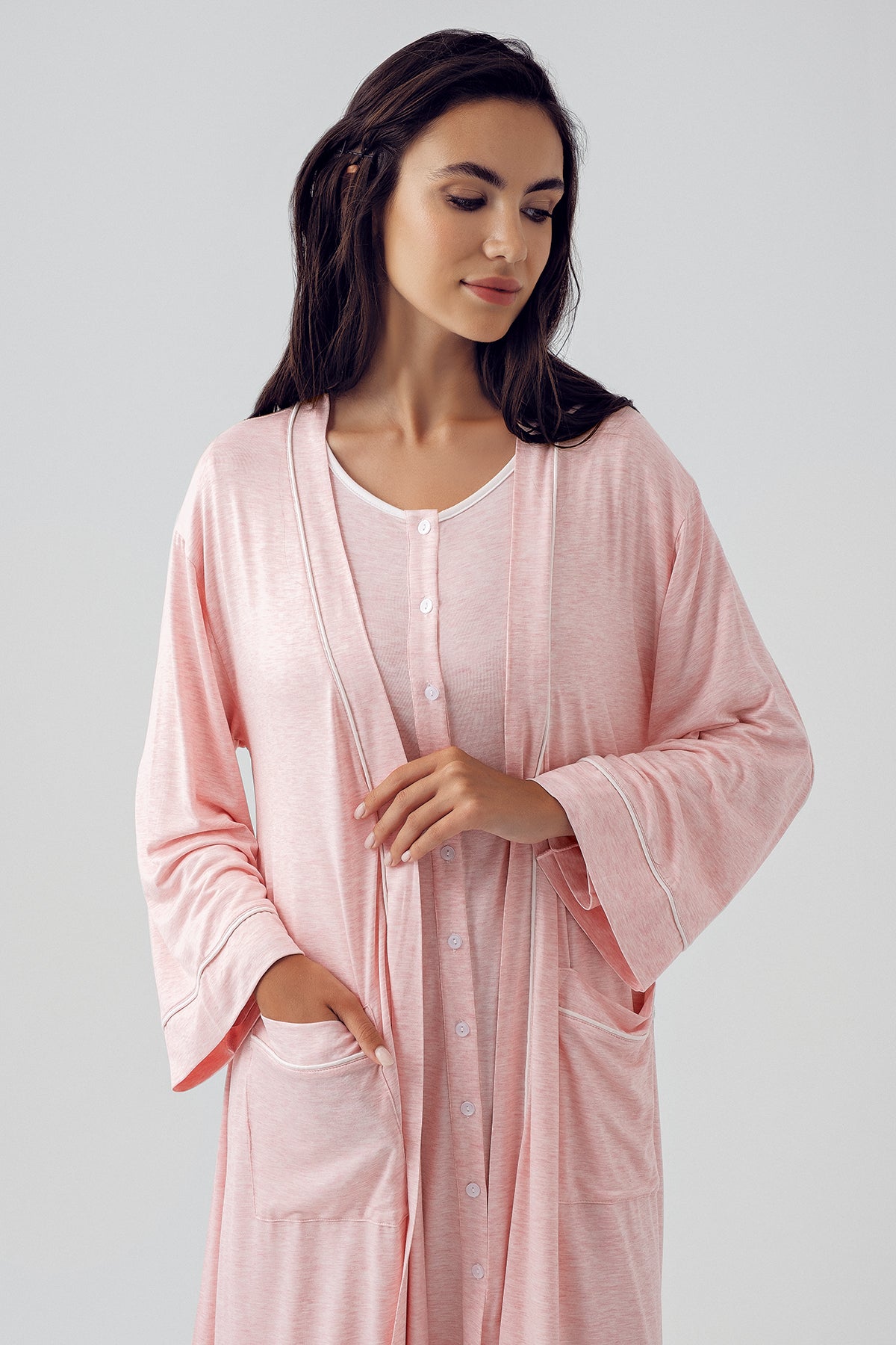 The Shopymommy nightgown comes with a matching robe, adding an extra layer of style and warmth. The robe is perfect for lounging around the house or for those early morning moments with your newborn. Its elegant design complements the nightgown, making you feel beautiful and put together, even in the comfort of your home.