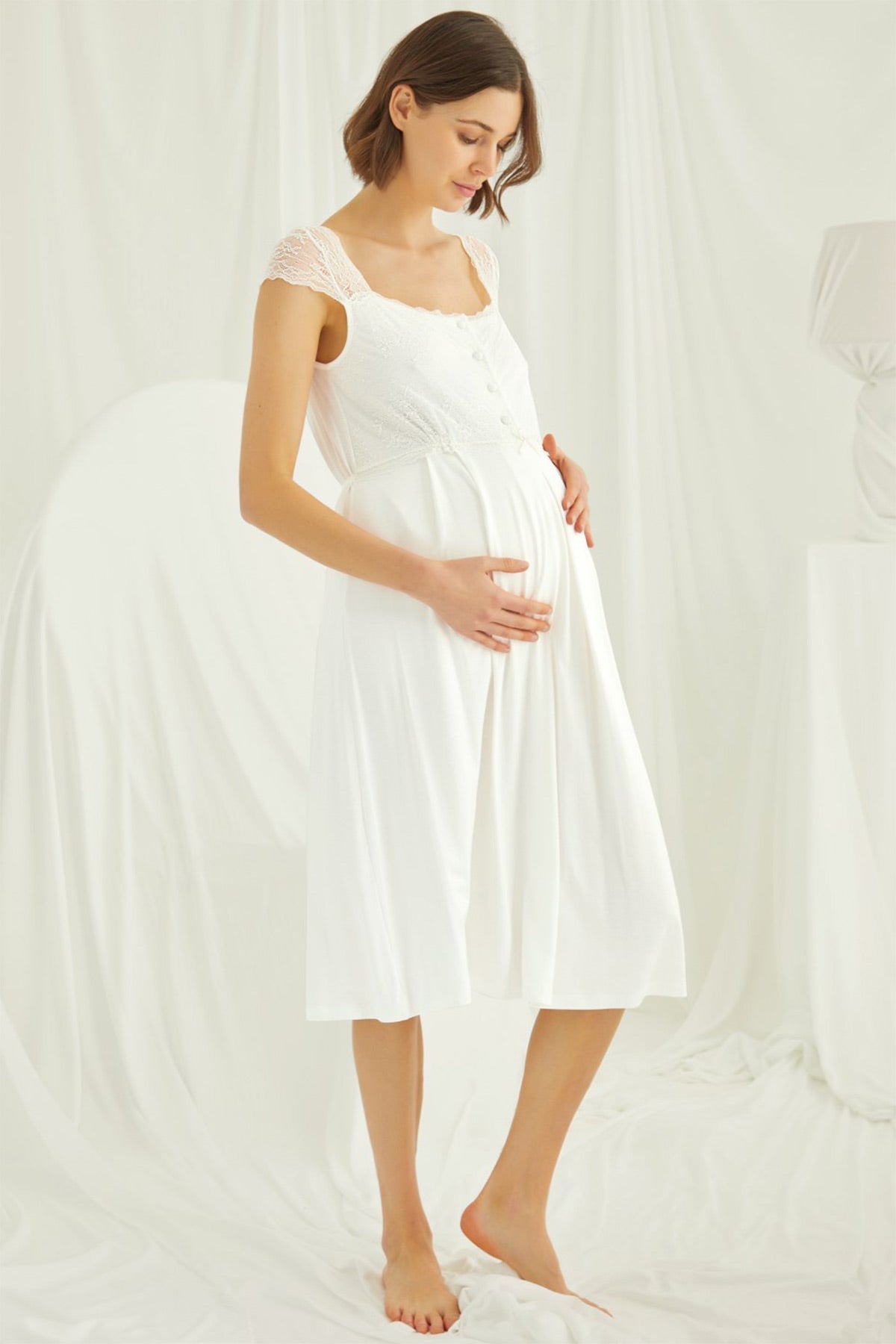 The Shopymommy 18300 Lace Maternity & Nursing Nightgown in Ecru is the perfect blend of comfort and functionality for expecting and new mothers. Crafted from the highest quality organic fabric sourced from Turkey, this nightgown prioritizes your comfort and health during those crucial months of pregnancy and postpartum. With its elegant lace detailing and soft fabric, it not only looks beautiful but also feels luxurious against your skin.