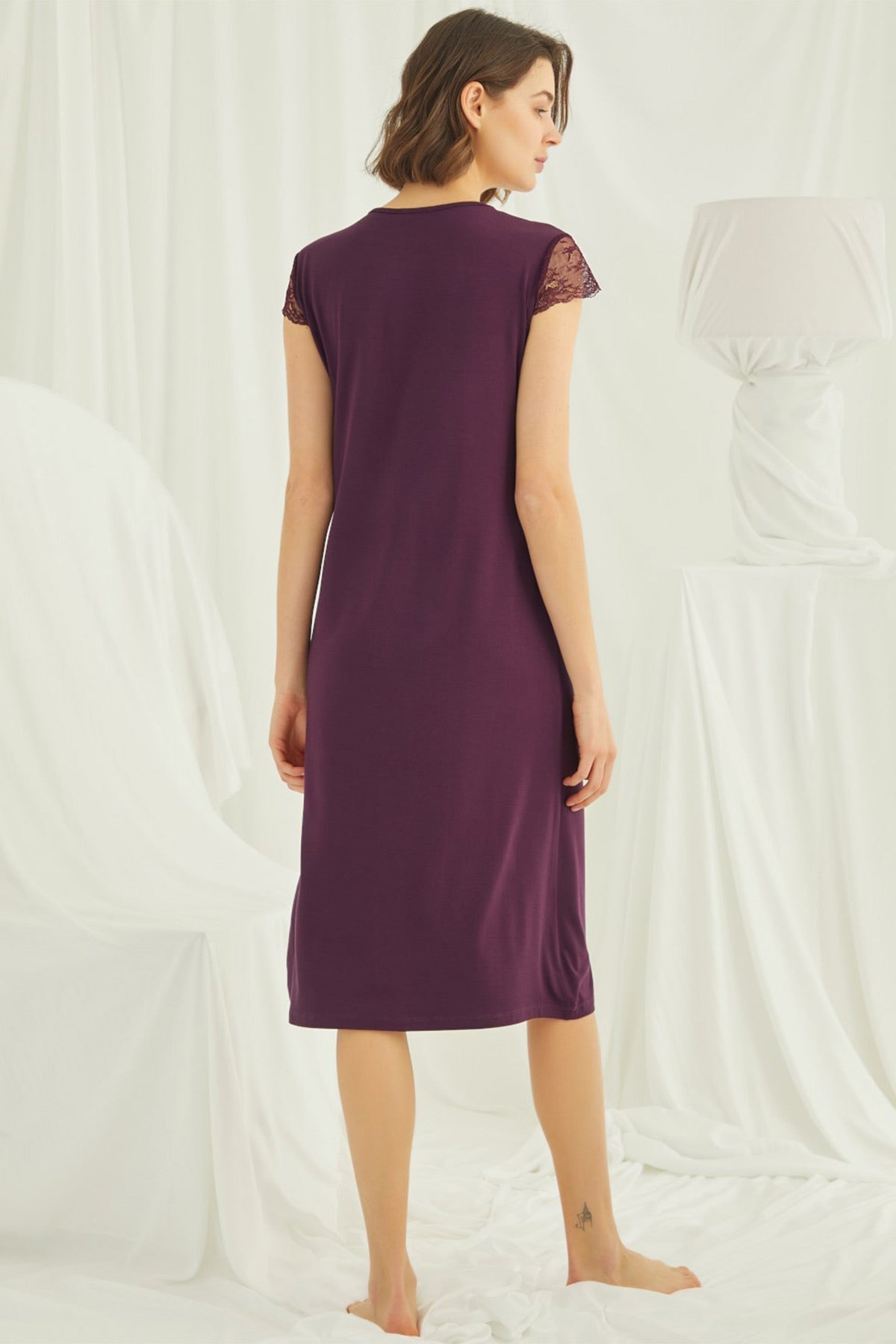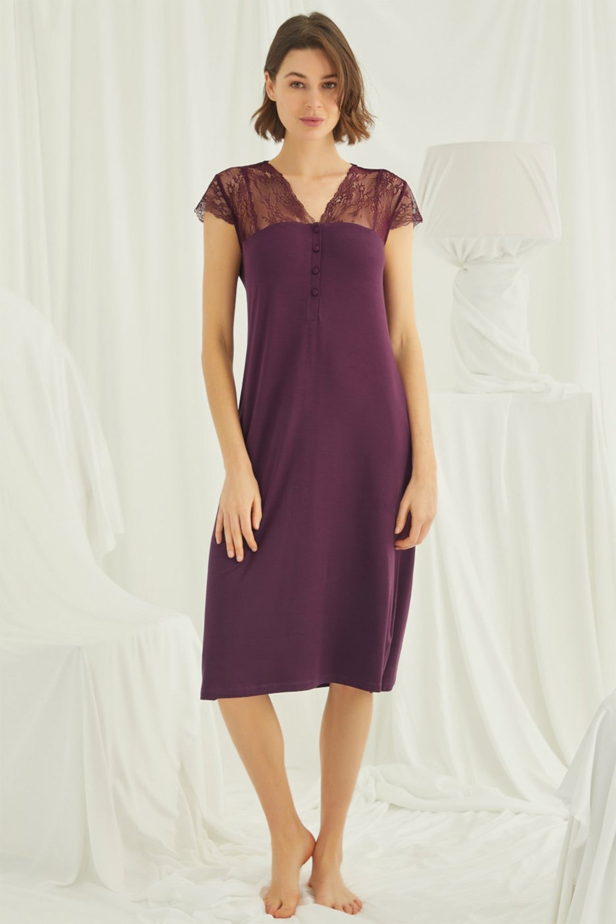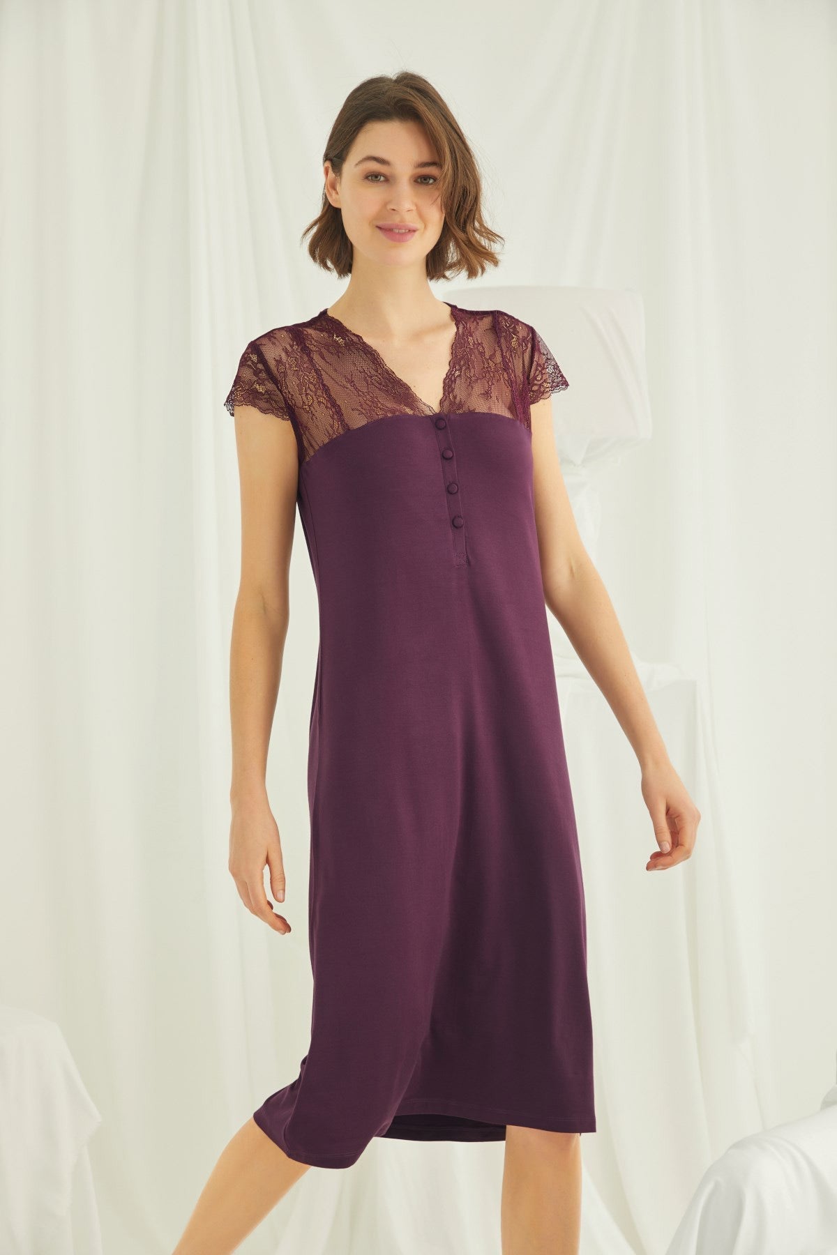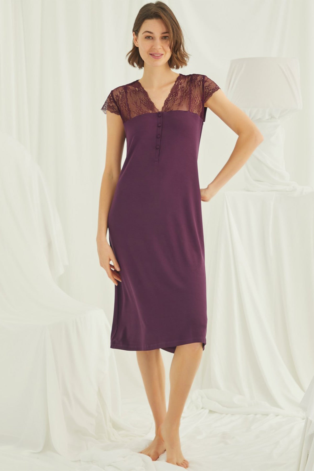 Available in plus sizes, this nightgown is designed to flatter your figure while providing ample room for comfort. The lace V-neck adds a touch of elegance, making it suitable for both lounging at home and for those late-night visitors. You can feel confident and beautiful while wearing this nightgown, no matter your body type.