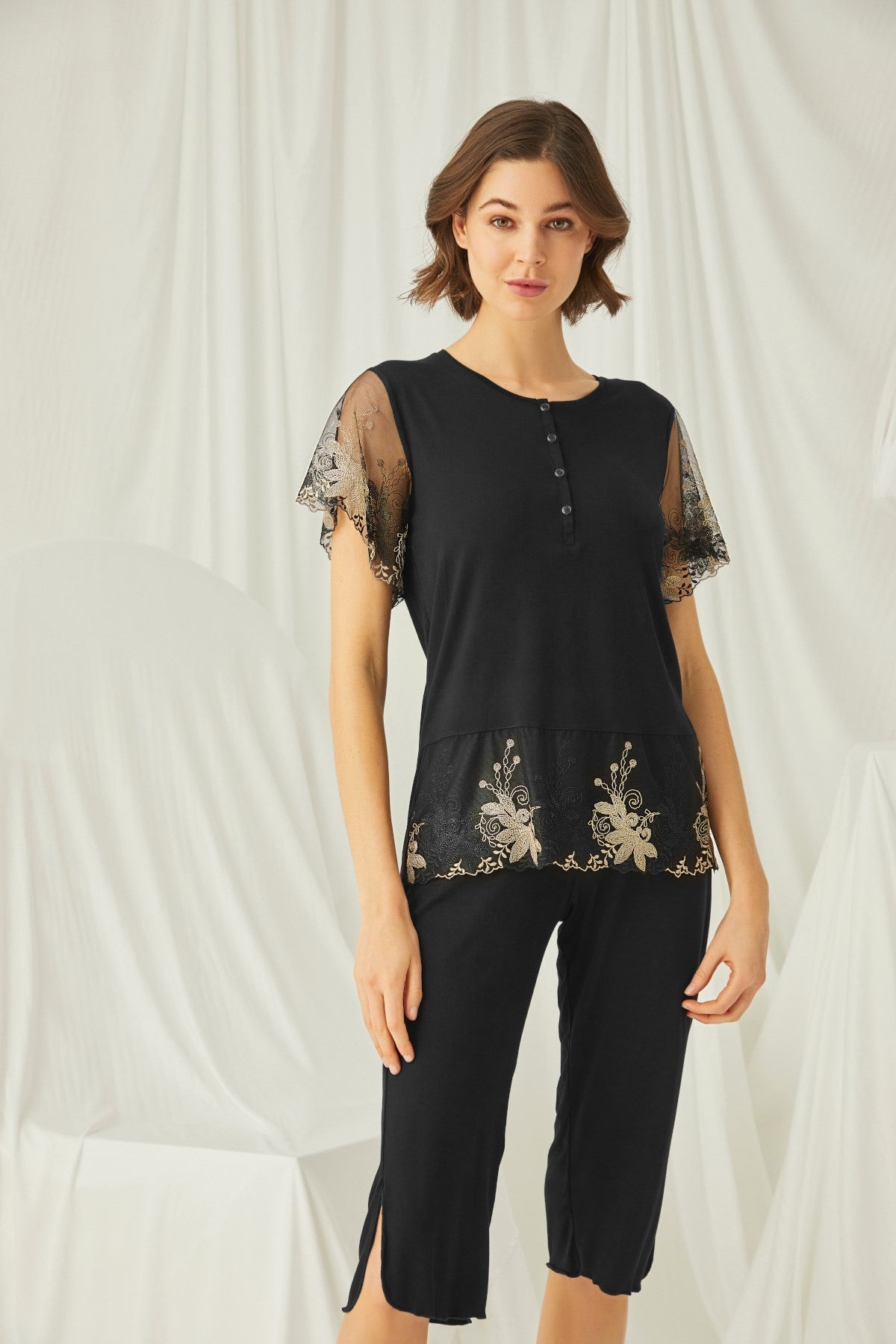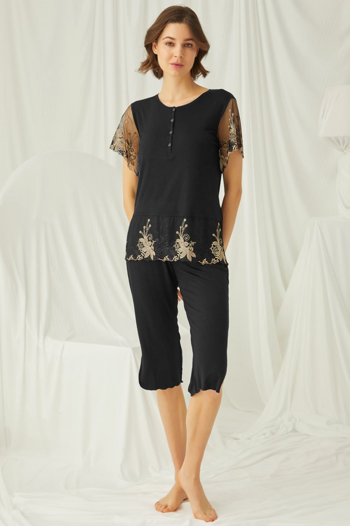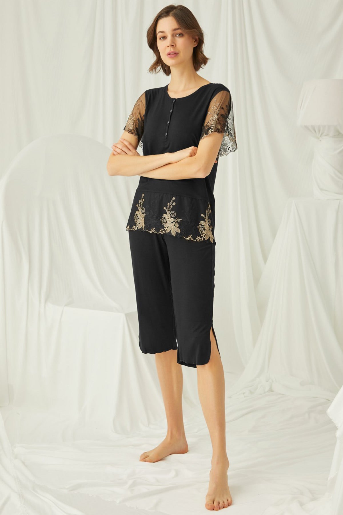 Introducing the Shopymommy 19172 Lace Plus Size Capri Maternity & Nursing Pajamas, designed specifically for the comfort and convenience of mothers-to-be and new moms. Crafted from the highest quality organic fabric sourced from Turkey, these pajamas prioritize your health and comfort during pregnancy and nursing. The soft and breathable material ensures that you feel relaxed and cozy, whether you're lounging at home or getting ready for bed.