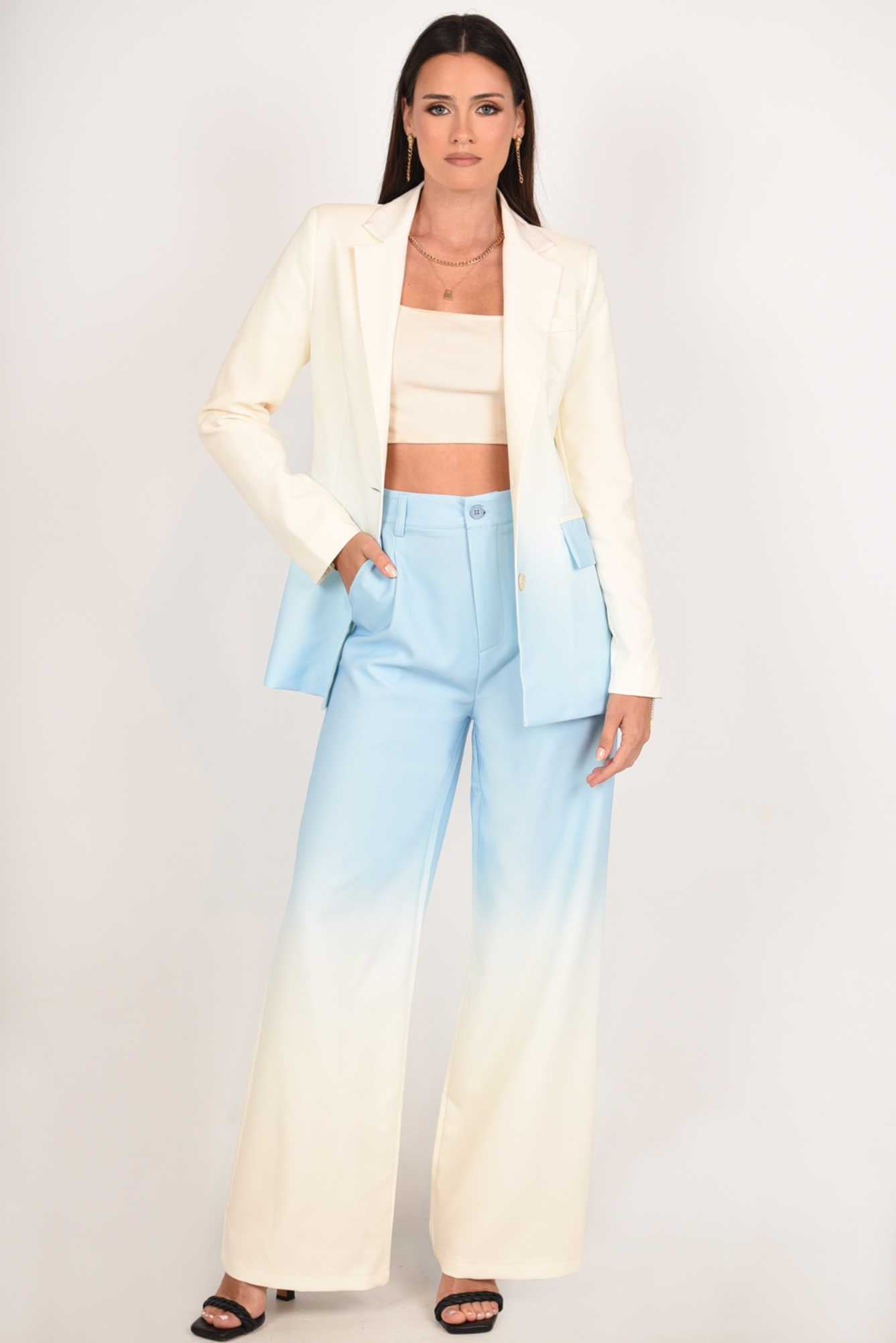 Ombre You Say High Waisted Women's Blue Pants featuring wide legs and a high-waisted design, perfect for formal and casual occasions.
