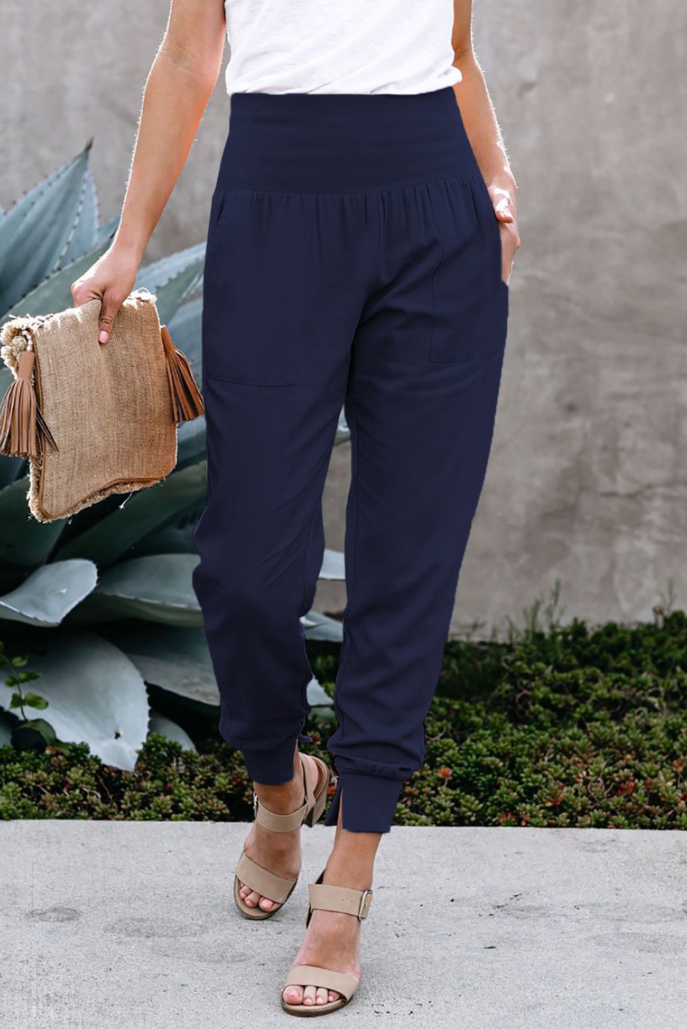 The simple yet stylish design of these joggers makes them a versatile addition to your wardrobe. The solid blue color adds a pop of color to your outfit, while the two slanted pockets offer practicality without compromising on style. Whether you're heading to the gym, running errands, or meeting friends for coffee, these joggers will keep you looking chic and feeling comfortable.