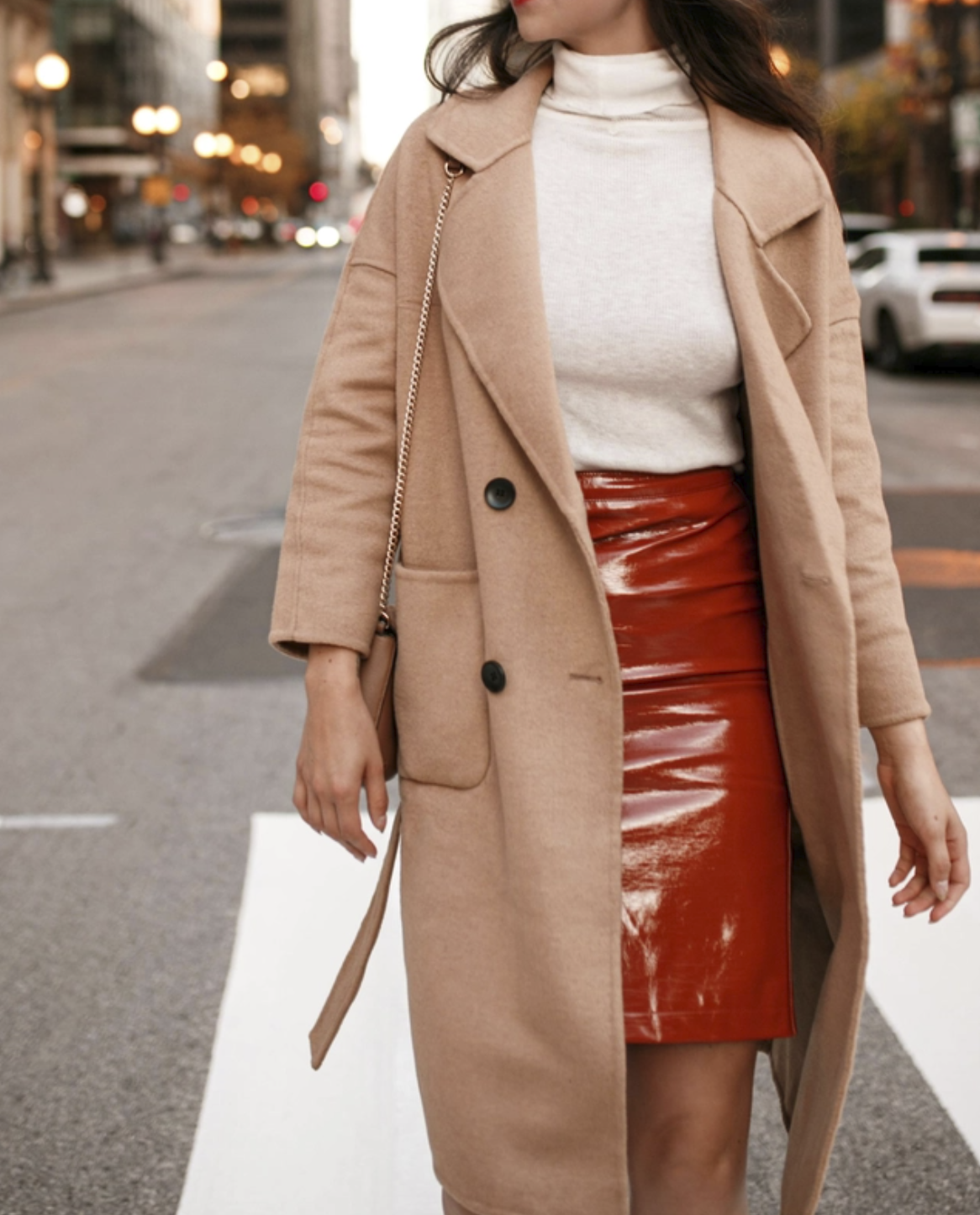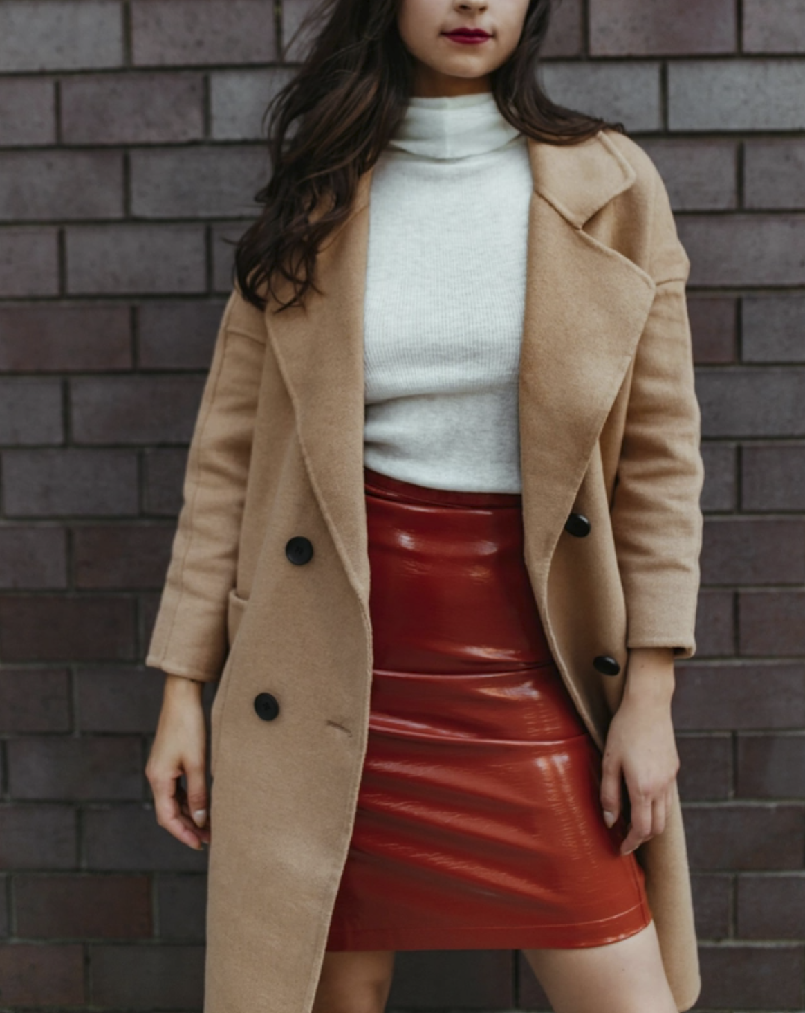 Introducing the Berlin Rock ‘n’ Roll Vinyl Skirt, a fashion-forward piece that redefines the classic A-line silhouette with a modern twist. Crafted from high-quality vegan leather, this skirt not only exudes an edgy vibe but also aligns with sustainable fashion choices. The striking burnt orange hue adds a pop of color to your wardrobe, making it a perfect statement piece for any occasion. Whether you're heading to a concert, a casual outing, or a night out with friends, this skirt is designed to turn heads and elevate your style. The concealed side zip ensures a snug fit, while the back slit allows for comfortable movement, making it as functional as it is fashionable. Pair it with combat boots and a moto jacket for a rock-inspired look, or dress it down with white sneakers and a graphic tee for a laid-back vibe. The versatility of the Berlin Rock ‘n’ Roll Vinyl Skirt means it can be styled in countless ways, making it a must-have addition to your wardrobe. The fabric composition includes 60% PU and 40% polyester, ensuring durability and a comfortable fit. Plus, it is fully lined for added comfort. Caring for this stylish skirt is easy; simply machine wash it in cold water to keep it looking fresh and vibrant. Available in multiple sizes, the Berlin Rock ‘n’ Roll Vinyl Skirt is modeled in size S, with a length of 23”/59cm and a waist measurement of 26”/66cm. Size M features a length of 24”/60cm and a waist of 28”/70cm, while size L measures 24”/61cm in length and 29”/74cm in waist. For those who need a bit more room, size XL offers a length of 24.4”/62cm and a waist of 31”/78cm. This skirt is not just a piece of clothing; it's a statement of individuality and style. Embrace your inner rock star with the Berlin Rock ‘n’ Roll Vinyl Skirt and make a bold fashion statement wherever you go. Its edgy design and high-quality materials ensure that you will not only look good but feel confident and comfortable all day long. Don't miss out on the opportunity to add this unique skirt to your collection. Shop now and express your unique style with the Berlin Rock ‘n’ Roll Vinyl Skirt, the perfect blend of fashion and function.