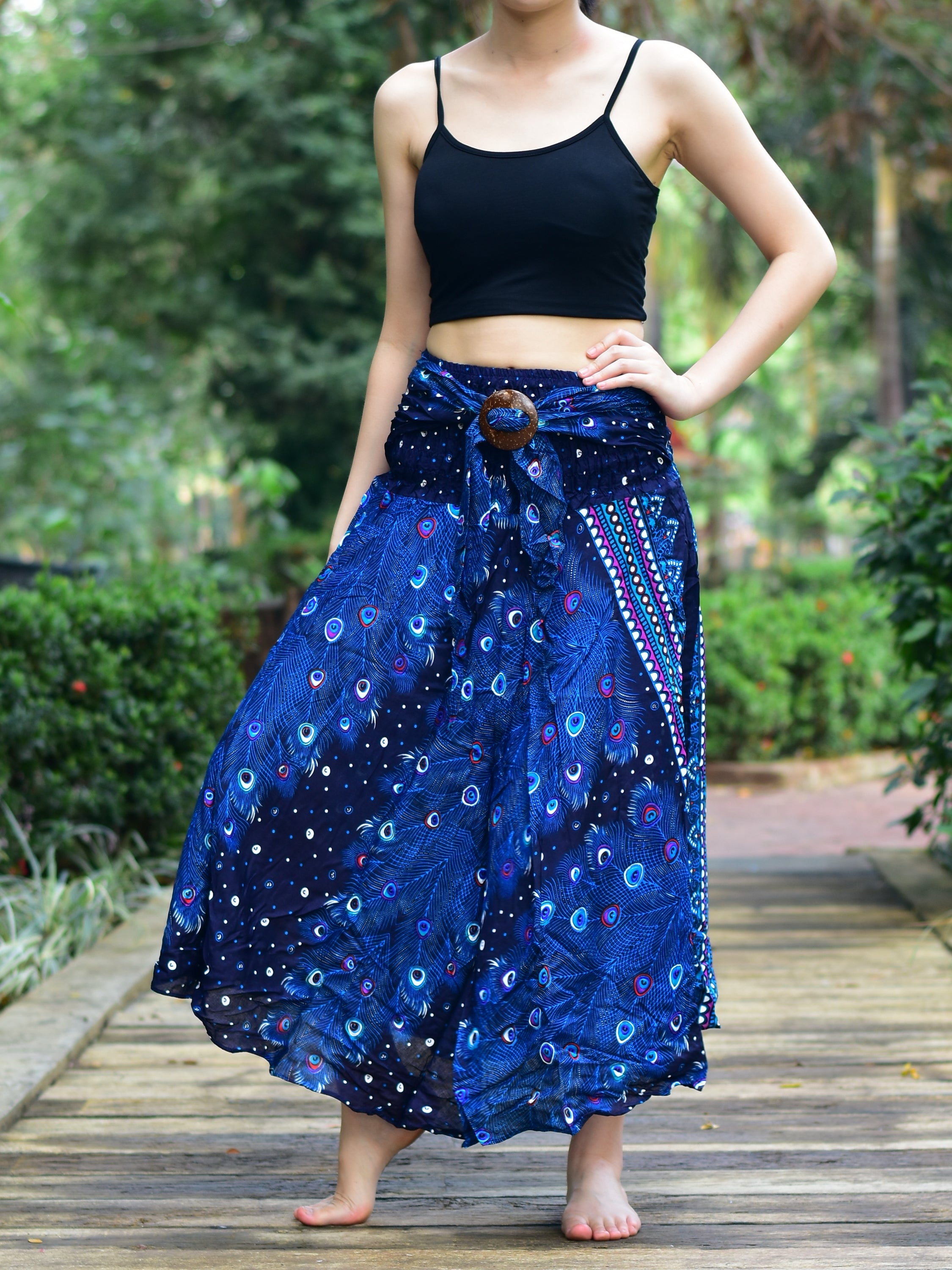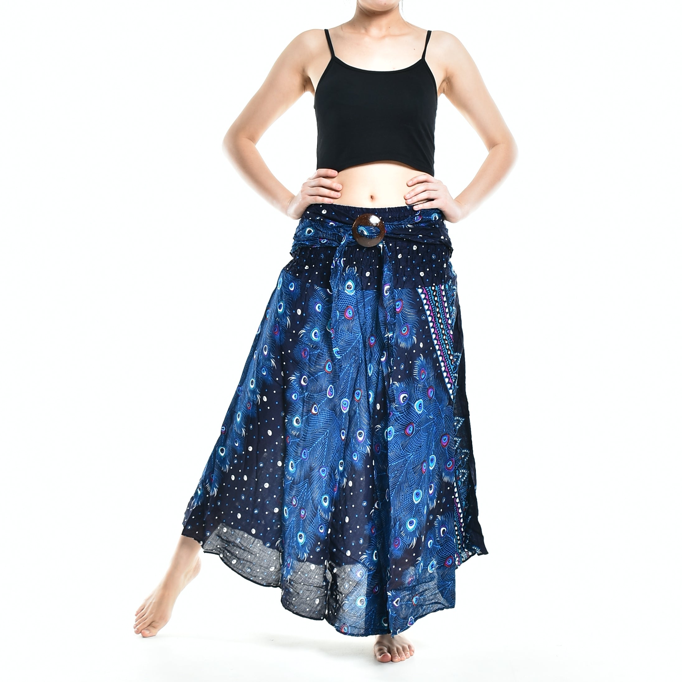 Bohotusk is committed to providing high-quality, stylish clothing that empowers women to express their individuality. The Blue Peacock Long Skirt with Coconut Buckle is a testament to this commitment, offering a unique blend of comfort, style, and versatility. Whether you're dressing up for a special occasion or looking for a comfortable outfit for everyday wear, this skirt is sure to become a favorite in your wardrobe.