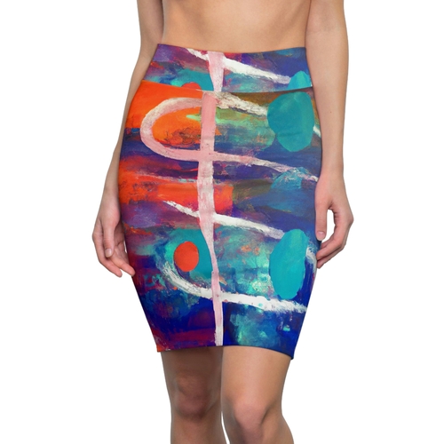 The multicolor abstract print of this pencil skirt is inspired by the freedom of creativity, allowing you to express your unique style. Whether you're heading to the office, attending a social event, or enjoying a night out, this skirt will ensure you stand out in any crowd. The vibrant colors and artistic design make it a versatile piece that can be paired with various tops and accessories.