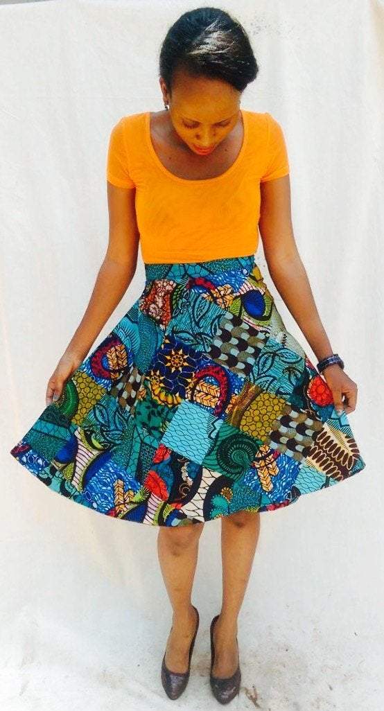 Introducing the Kitenge round women mini wrap skirt, a stunning addition to your wardrobe that combines style, comfort, and uniqueness. This mini skirt is designed for the modern woman who loves to express her individuality through fashion. Made from high-quality materials, this skirt features a beautiful mixed print that is sure to turn heads wherever you go. Whether you're dressing it up for a special occasion or keeping it casual for a day out, this skirt is the perfect choice for any event. The Kitenge round mini wrap skirt is not just a piece of clothing; it's a statement of style and personality. Each skirt is uniquely handmade, ensuring that no two pieces are alike. This means that when you wear this skirt, you are wearing something truly special that reflects your unique taste. The skirt comes with two straps that allow you to tie it off securely, providing a comfortable fit that flatters your figure. The versatility of this skirt makes it suitable for various occasions, from casual outings to more formal events. Pair it with a simple top and sandals for a relaxed look, or dress it up with heels and accessories for a night out. The mixed prints add a fun and vibrant touch to your outfit, making it a great choice for those who dare to be different. Available in multiple sizes, including Size S (US 6-8), Size M (US 10), and Size L (US 12), this skirt caters to a range of body types. The size details are as follows: Size S has a waist measurement of 35 inches, hips of 40 inches, and a length of 21 inches. Size M features a waist of 43 inches, hips of 42 inches, and a length of 23 inches. Size L has a waist of 48 inches, hips of 44 inches, and a length of 25 inches. This ensures that you can find the perfect fit for your body shape. The Kitenge round women mini wrap skirt is not only fashionable but also practical. The lightweight fabric makes it comfortable to wear throughout the day, while the wrap design allows for easy movement. You can confidently wear this skirt to brunch with friends, a day at the park, or even a casual office setting. The unique patches and prints on each skirt add character and charm, making it a standout piece in your wardrobe. Embrace your individuality and make a bold fashion statement with the Kitenge round women mini wrap skirt. It's more than just a skirt; it's a celebration of creativity and self-expression. Don't miss out on the opportunity to own a one-of-a-kind piece that showcases your unique style. Shop now and add this exquisite skirt to your collection today!