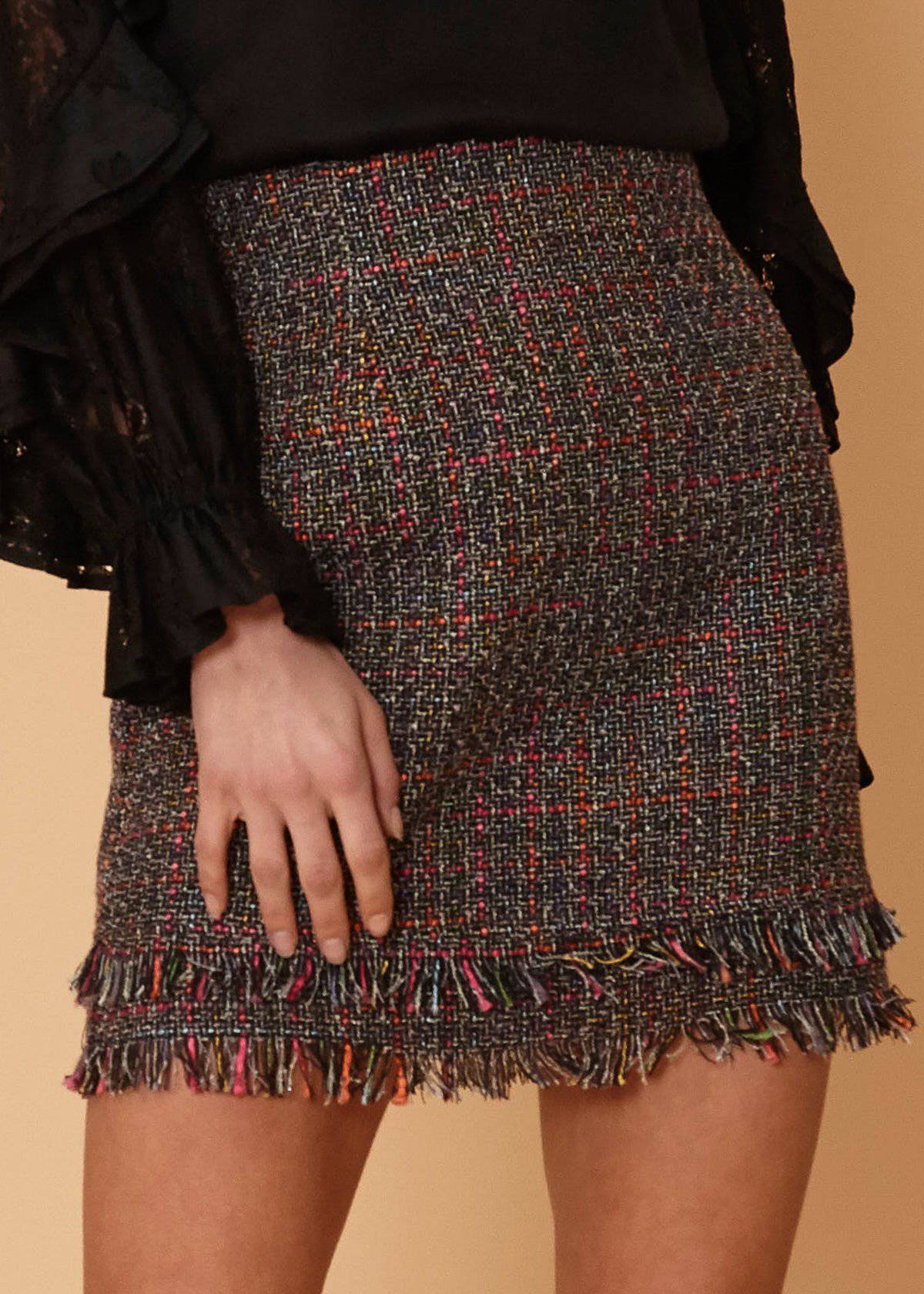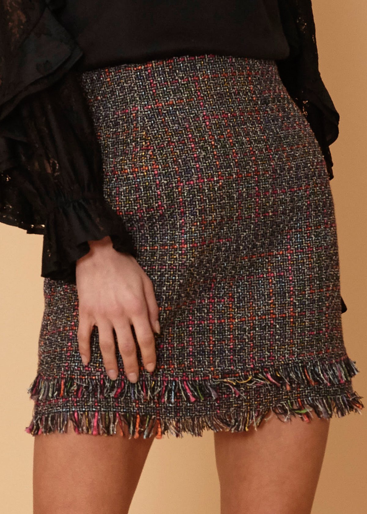 Introducing the Women's Mini Skirt in Black Ribbon, a fashionable addition to your wardrobe that combines style and comfort. This mini skirt is crafted from a high-quality blend of 68% polyester, 30% acrylic, and 2% metallic, ensuring durability and a luxurious feel. The tweed fabric gives it a classic yet contemporary look, making it suitable for various occasions, from casual outings to more formal events. The black ribbon detail adds a touch of elegance, allowing you to express your unique style effortlessly. The back zipper closure not only enhances the skirt's sleek silhouette but also provides convenience when dressing up or down. The bottom fringe detail is a standout feature that sets this mini skirt apart from others, adding a playful and trendy element to your outfit. Whether paired with a simple top for a day out or dressed up with a blouse for a night on the town, this skirt is versatile enough to meet all your fashion needs. The imported quality ensures that you are getting a product that meets high standards of craftsmanship and design. This mini skirt is perfect for layering with tights during cooler months or wearing alone in warmer weather, making it a year-round staple. The combination of materials used not only provides comfort but also allows for easy maintenance, as it can be machine washed and retains its shape and color over time. Available in various sizes, this Women's Mini Skirt in Black Ribbon caters to different body types, ensuring a flattering fit for everyone. Embrace your inner fashionista and elevate your wardrobe with this must-have piece that promises to turn heads wherever you go. Ideal for pairing with ankle boots, heels, or even sneakers, this skirt is designed to be styled in multiple ways, giving you the freedom to create your own unique looks. Don't miss out on the opportunity to own this trendy and chic mini skirt that embodies modern fashion sensibilities while remaining timeless in its appeal. Add the Women's Mini Skirt in Black Ribbon to your collection today and enjoy the perfect blend of style, comfort, and versatility.