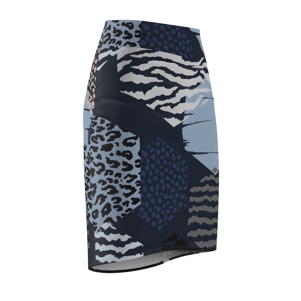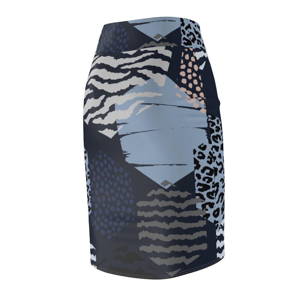 This geometric blue pencil skirt can be styled in numerous ways. Pair it with a fitted white blouse and heels for a polished office look, or dress it down with a casual graphic tee and sneakers for a relaxed weekend vibe. Layer with a blazer or denim jacket for added flair. Accessories like statement earrings or a bold necklace can elevate your outfit even further.