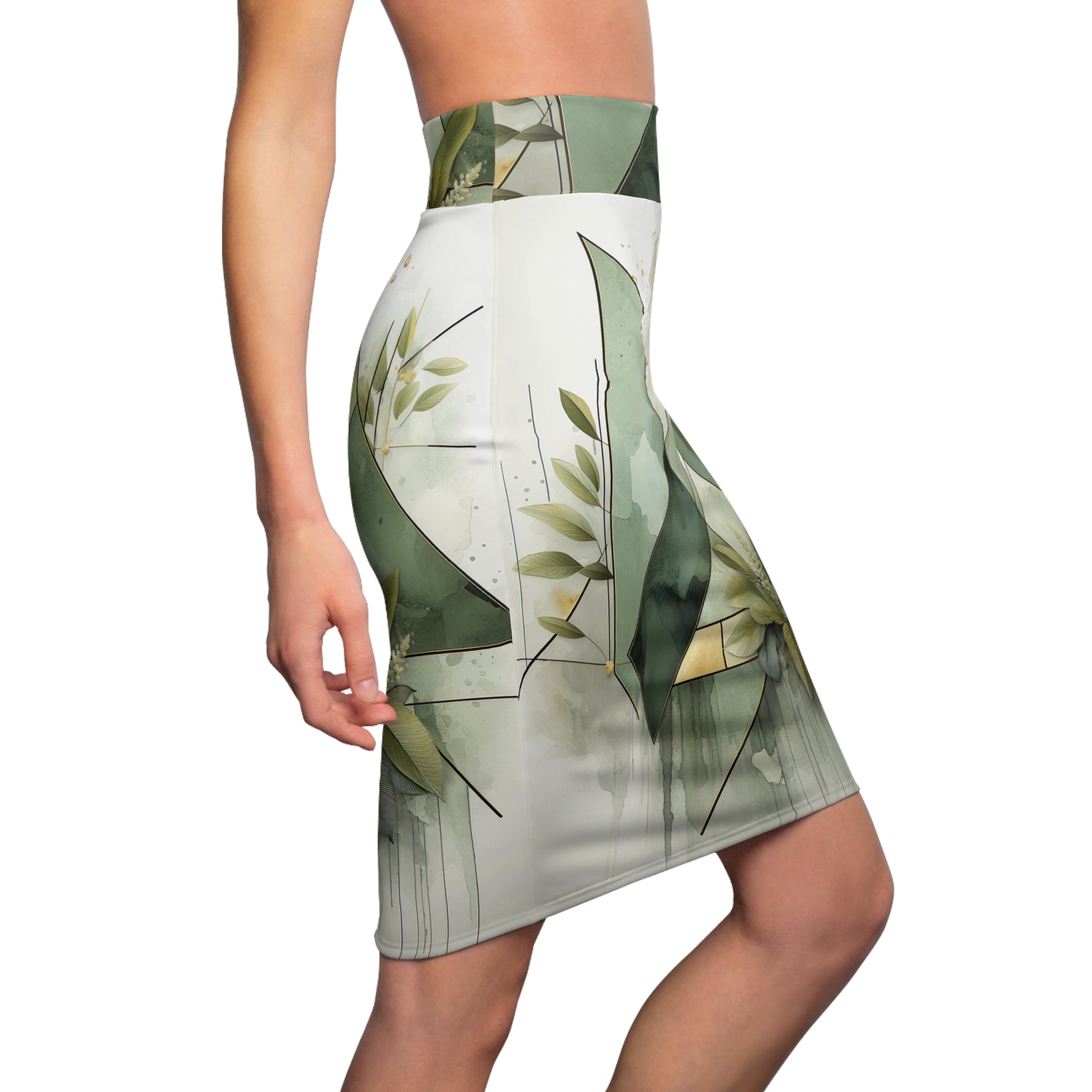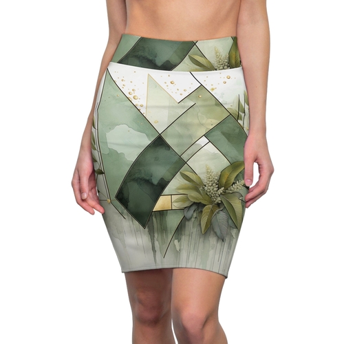 The Women's Pencil Skirt in an Olive Green Mint Leaf Geometric Print is a must-have addition to any modern woman's wardrobe. This stylish skirt not only enhances your silhouette but also boosts your confidence, making it perfect for various occasions. Whether you're heading to the office, attending a special event, or enjoying a night out, this skirt is designed to make you look and feel your best.