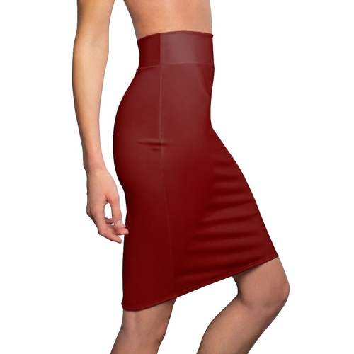 Introducing our Women's Maroon Pencil Skirt, a must-have piece for any fashion-forward wardrobe. Crafted from a high-quality blend of 88% polyester and 12% spandex, this skirt offers a luxurious feel while providing exceptional comfort. The unique fabric blend allows for a four-way stretch, ensuring that the skirt moves with you, whether you're at the office, out for dinner, or enjoying a casual day out. The mid-waist slim fit design flatters your figure, making it an ideal choice for various body types. The slight tapering along the outer thigh adds a touch of elegance and sophistication, enhancing your silhouette without compromising on comfort.