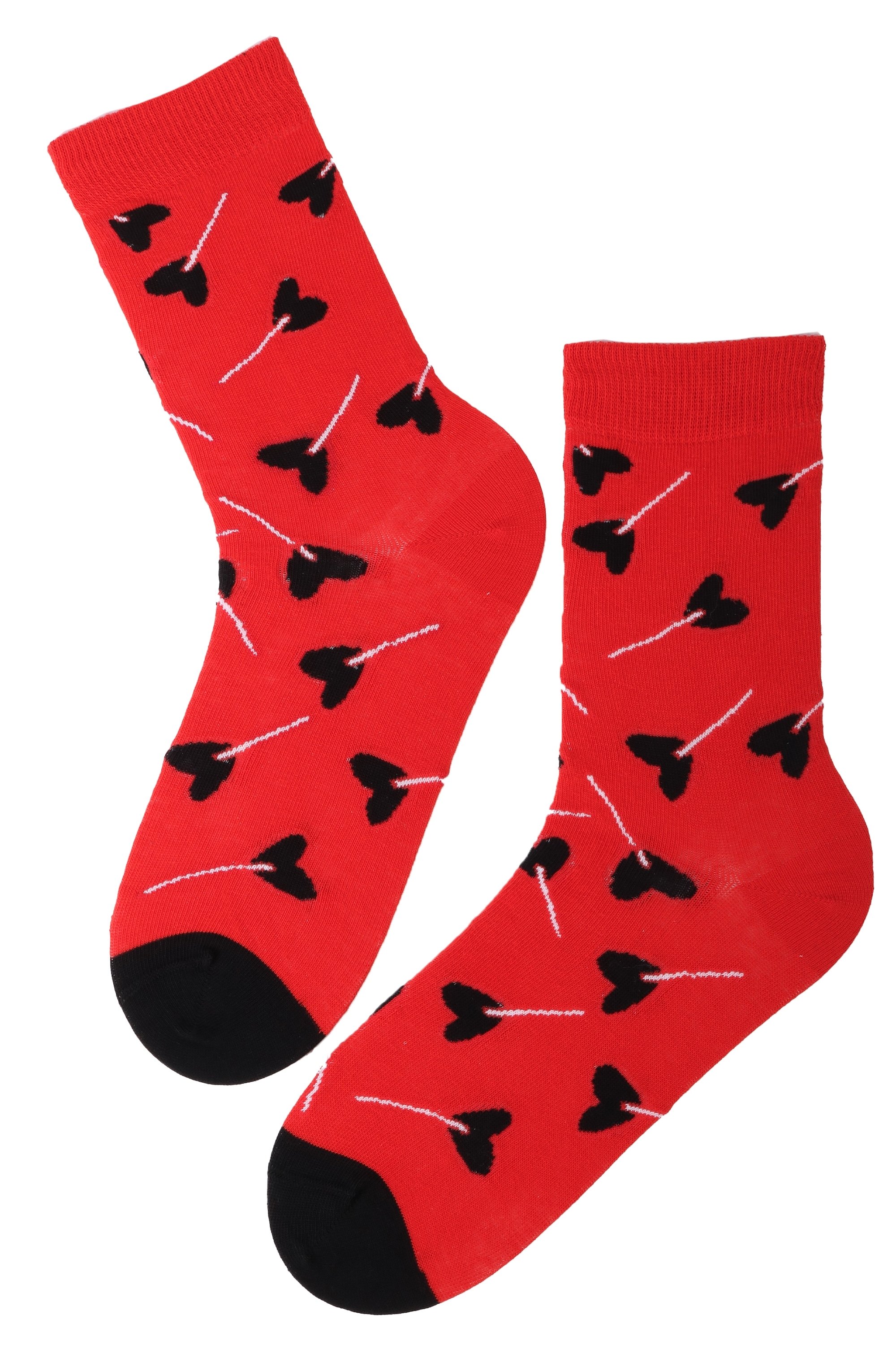 CANDY Valentine's Day socks for women featuring heart-shaped lollipops on a vibrant red background, made from a soft cotton blend.