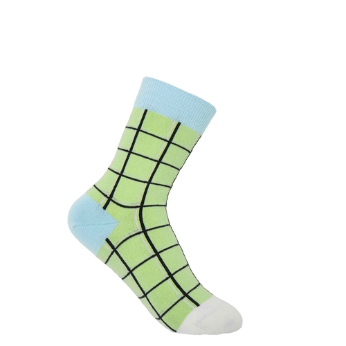The framework of any sleek outfit starts from the ground up, and with the pastel lime Grid luxury socks for women, you'll have an adamantine foundation of style. These socks are not just a fashion statement; they are a blend of comfort and elegance that can elevate any ensemble. The vibrant lime green paired with sky blue creates a visually appealing contrast that is sure to catch the eye.