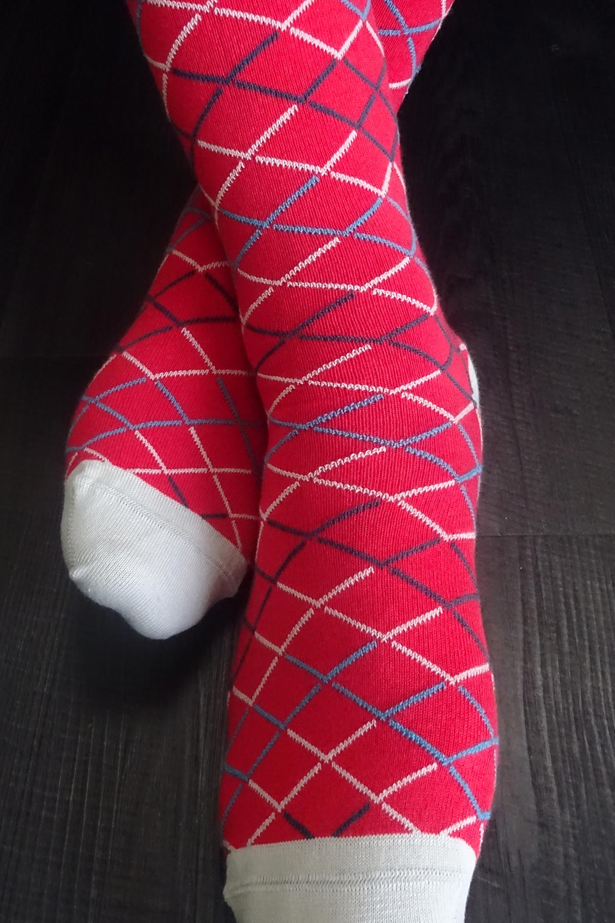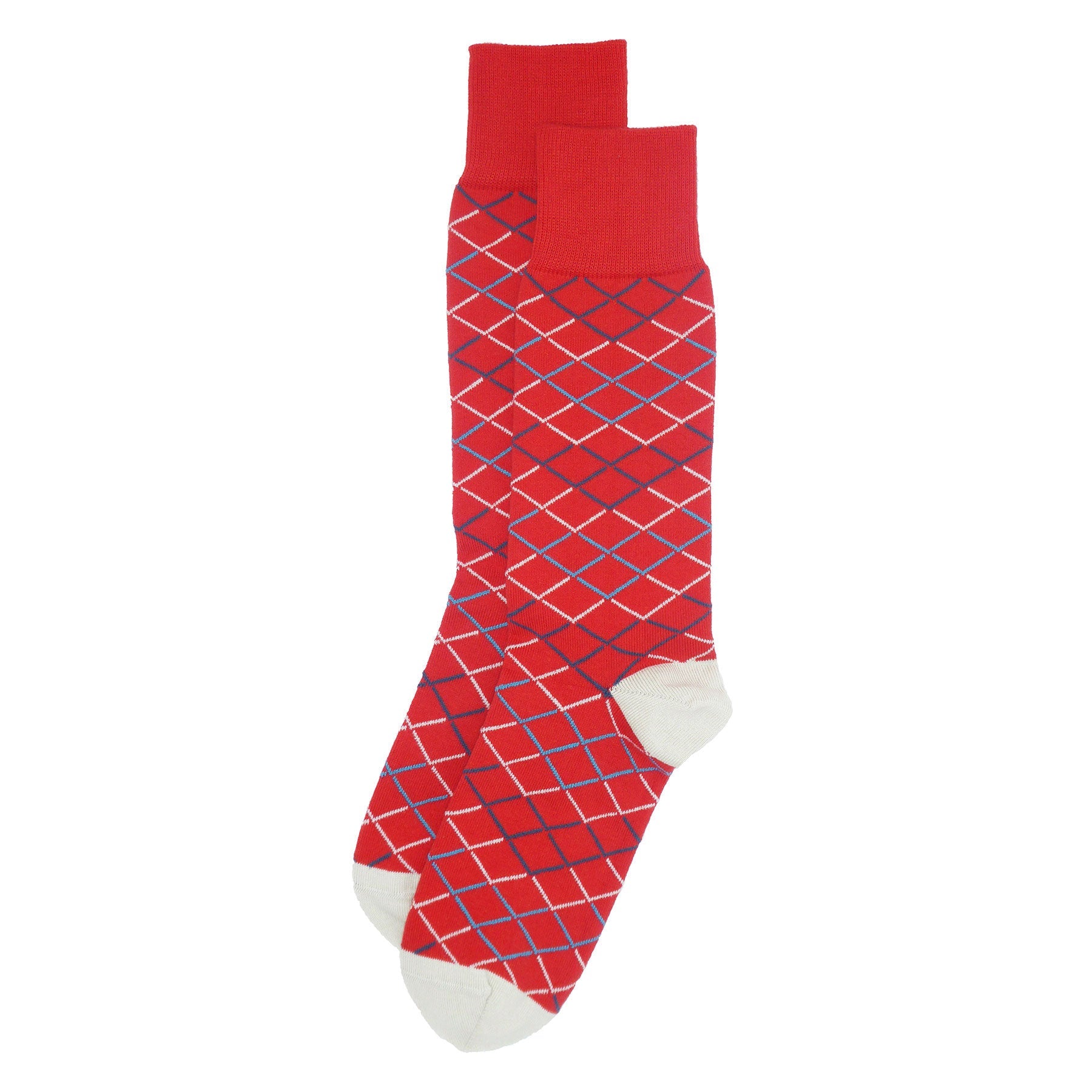 Introducing the Hastings Men's Socks in Crimson, a perfect blend of luxury and style for the modern gentleman. These socks are not just an accessory; they are a statement piece that enhances any outfit. Crafted with meticulous attention to detail, the Hastings socks feature a stunning dark teal, cream, and blue scale mail pattern that draws inspiration from the armor of old. The cream heel and toe add a touch of elegance, making these socks a must-have for any stylish man.