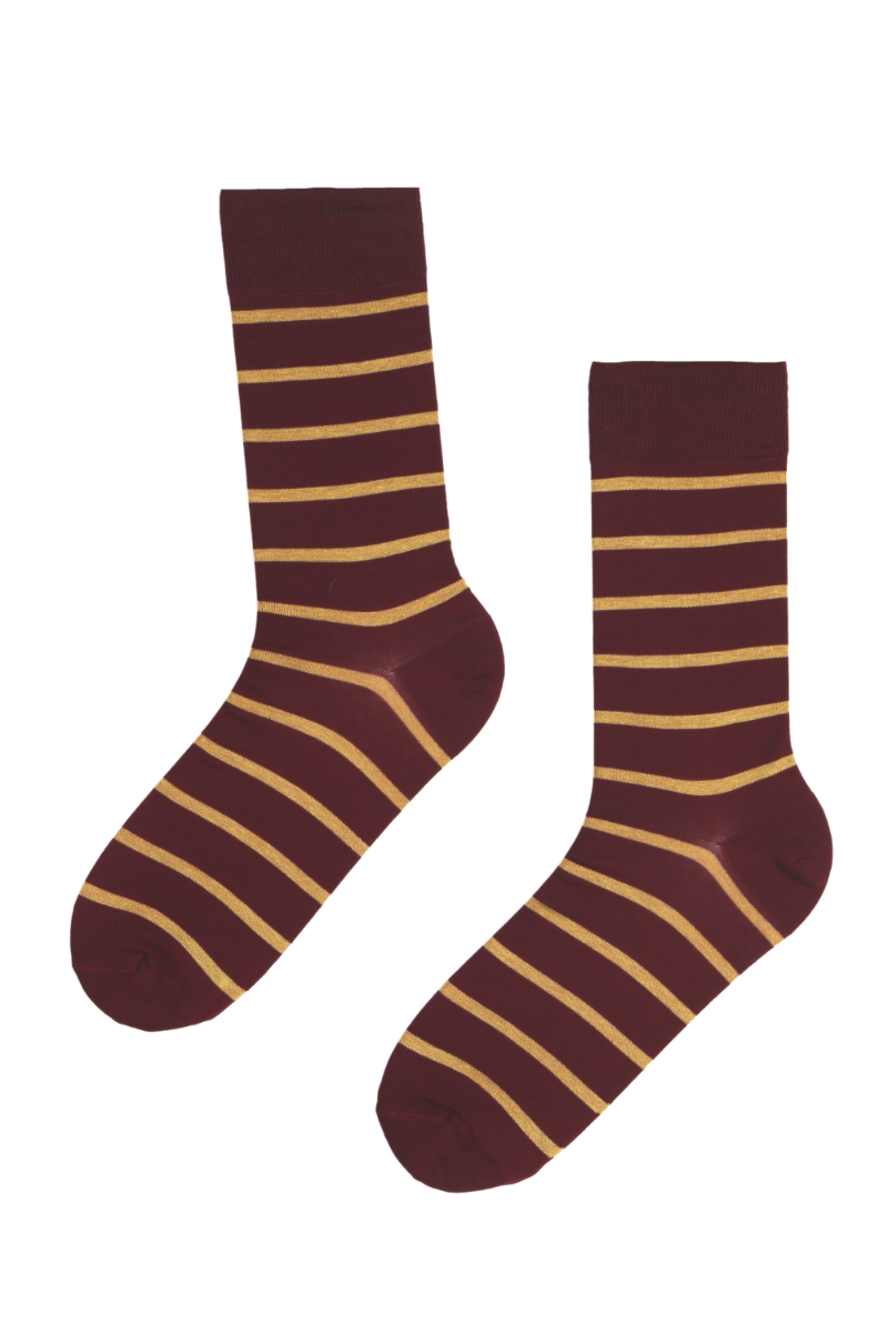 JOONAS burgundy striped suit socks featuring golden stripes, made from mercerized cotton for durability and comfort.