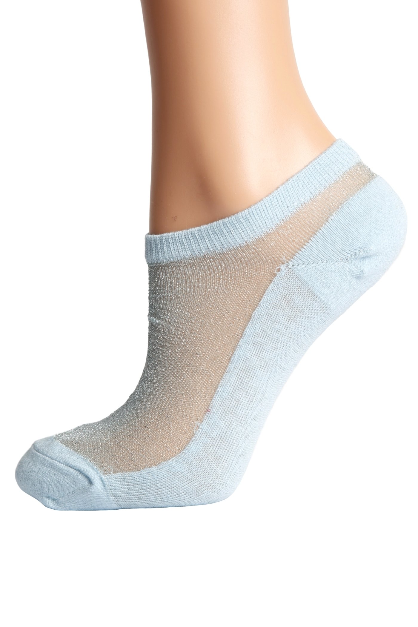 LUCINA light blue glittery socks for women, featuring a shiny lurex design and a comfortable low-cut style.