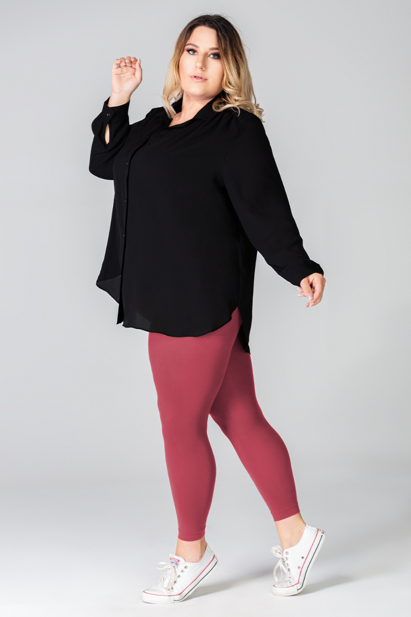The LUIZA queen-size burgundy leggings can be styled in numerous ways. Pair them with an oversized sweater for a cozy look, or wear them with a fitted top and statement jacket for a night out. The possibilities are endless, making these leggings a must-have in your wardrobe. They are perfect for layering, allowing you to create stylish outfits for any season.