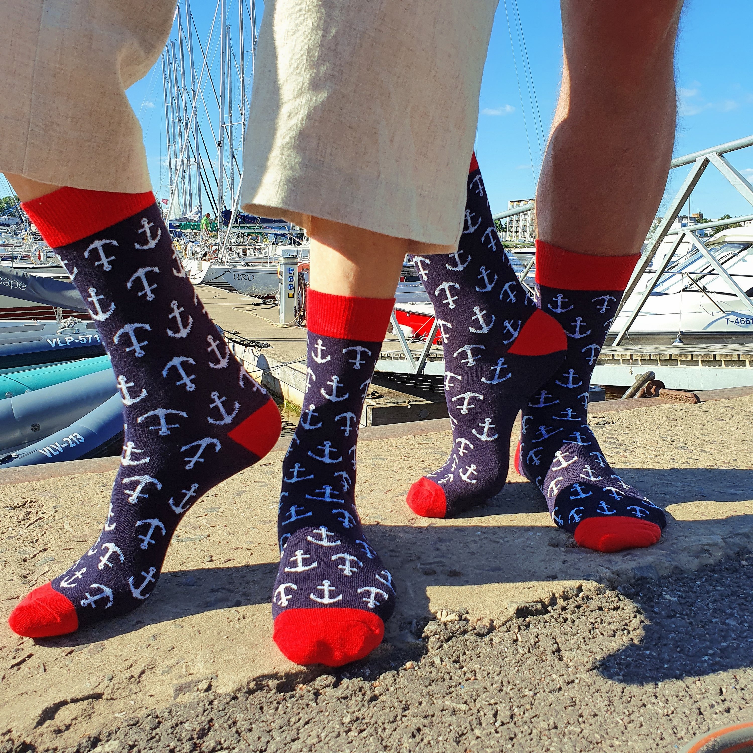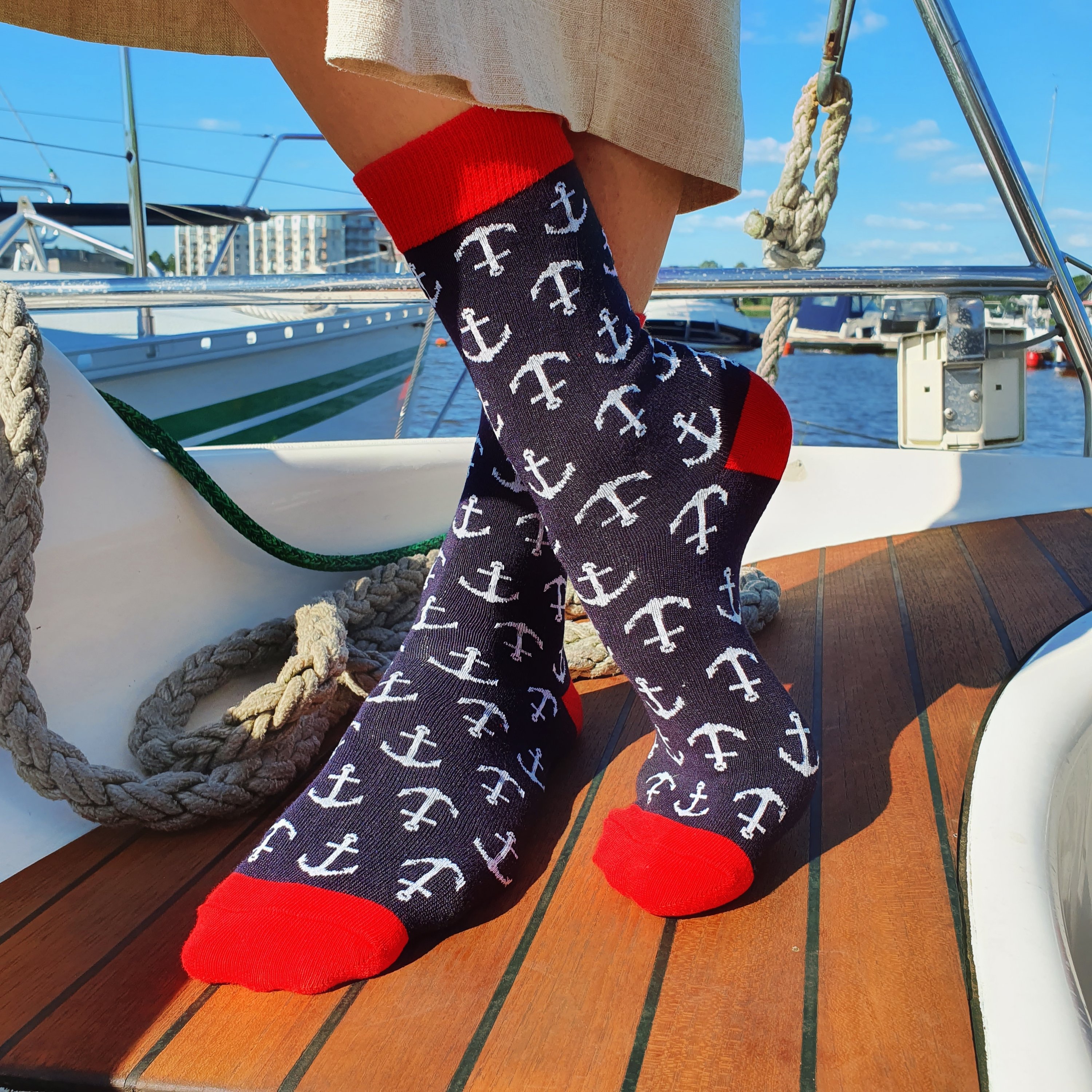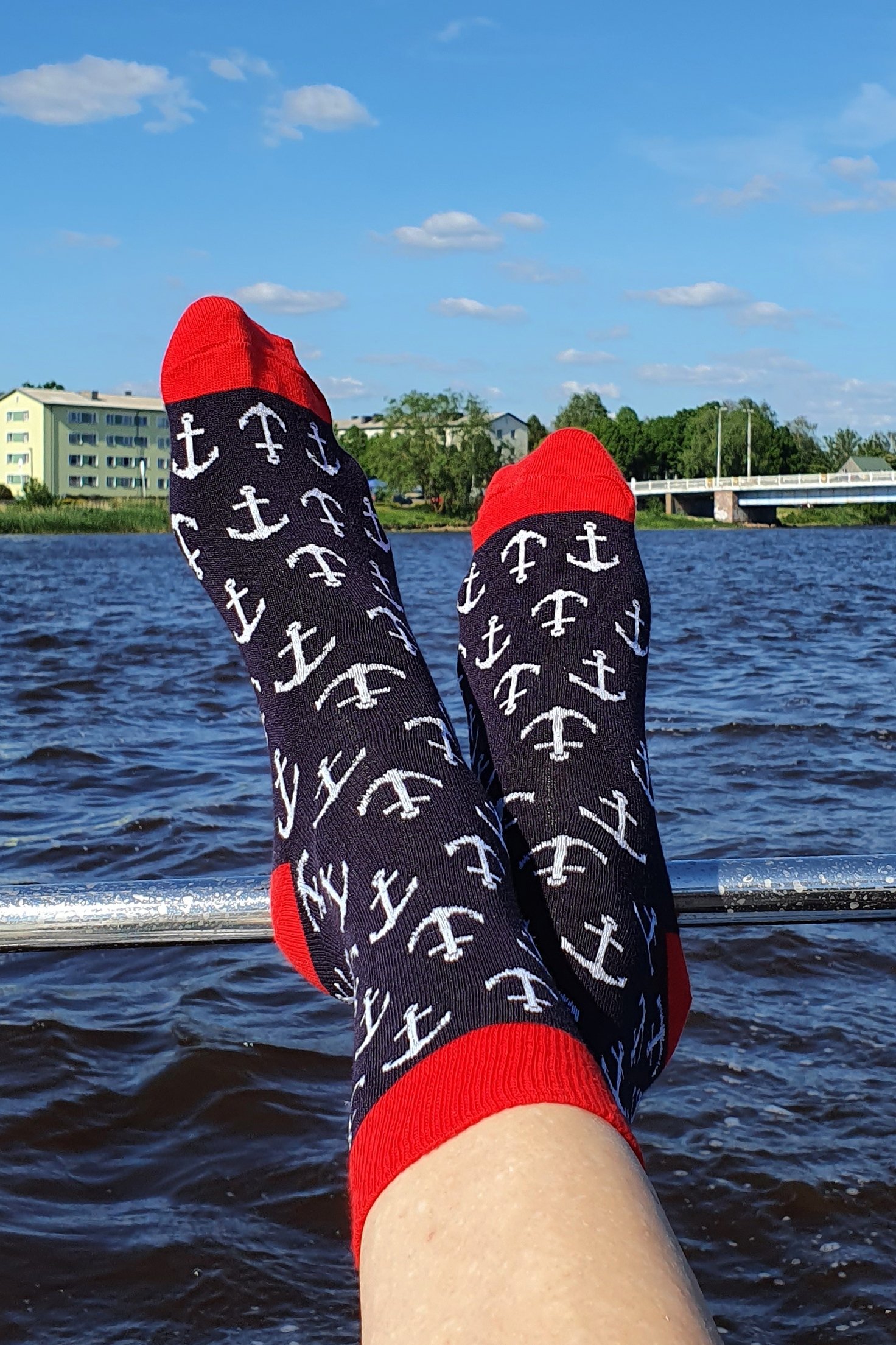 The MARINE socks feature a unique knitted anchor pattern that adds a playful yet chic element to your look. This design is not only fashionable but also reflects a nautical theme, perfect for those who love the sea or want to add a bit of whimsy to their attire. Whether you're dressing up for a special occasion or keeping it casual, these socks will complement your style effortlessly.