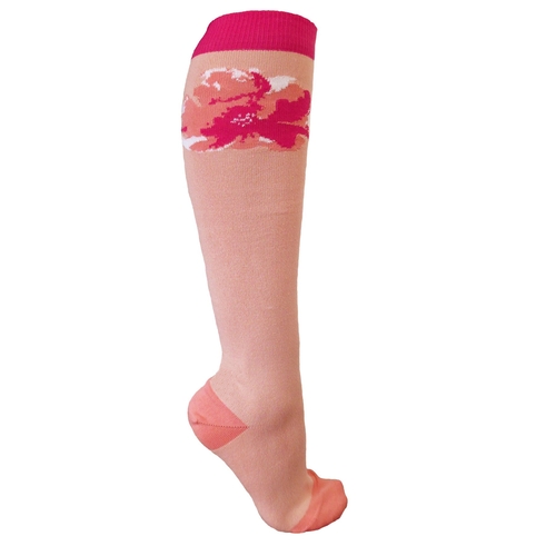 The blush color of these socks is complemented by delicate pinks and soft whites, reminiscent of blooming wildflowers. This charming design makes them a versatile accessory that can be paired with various outfits. Whether you're wearing them with horse-riding boots, ankle boots, or even sneakers, these socks will add a stylish touch to your look. Their knee-length cut ensures that they stay in place while providing warmth and comfort.