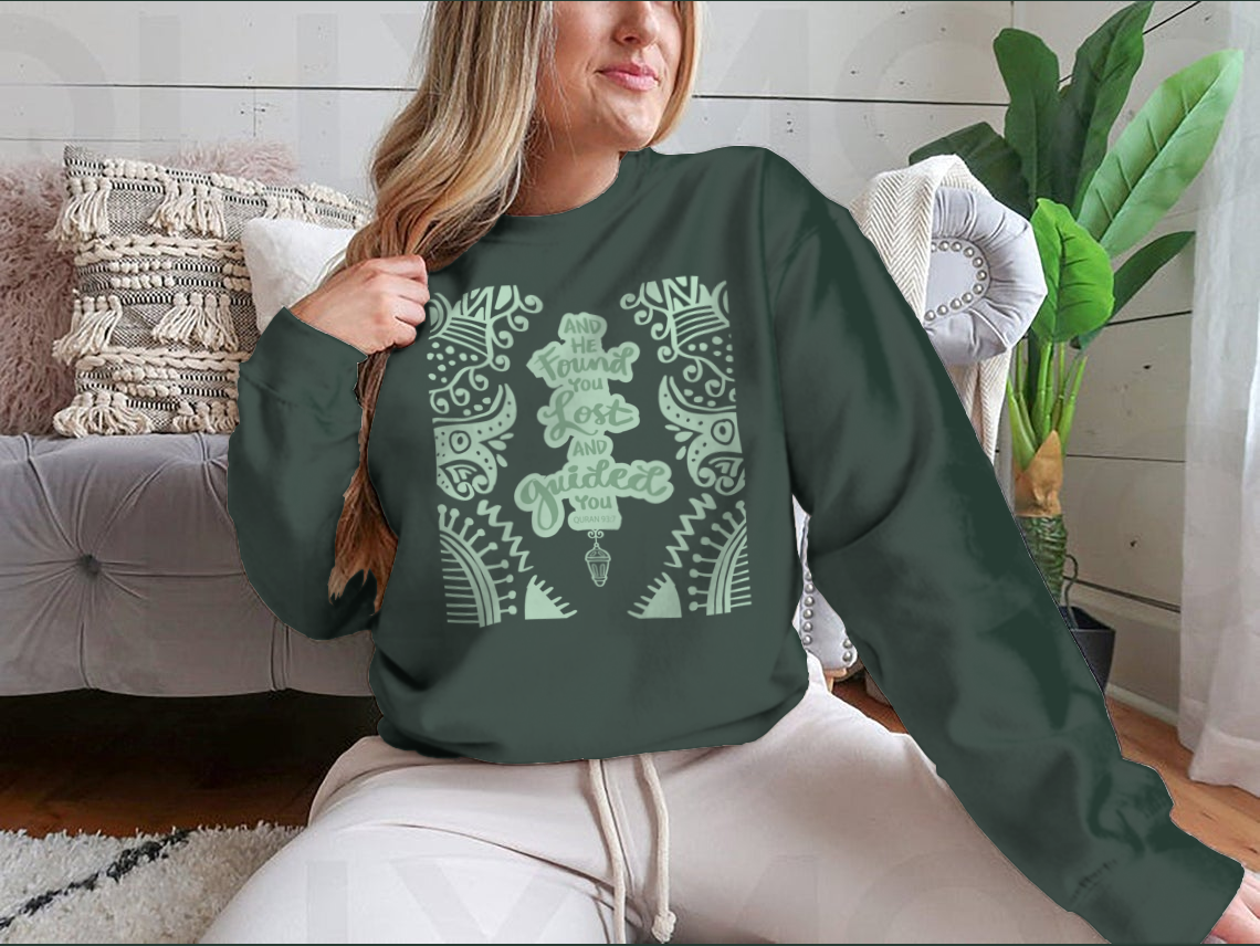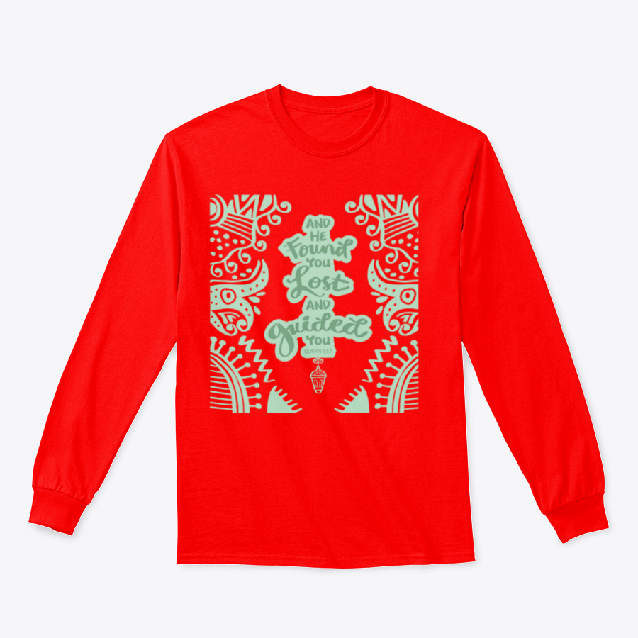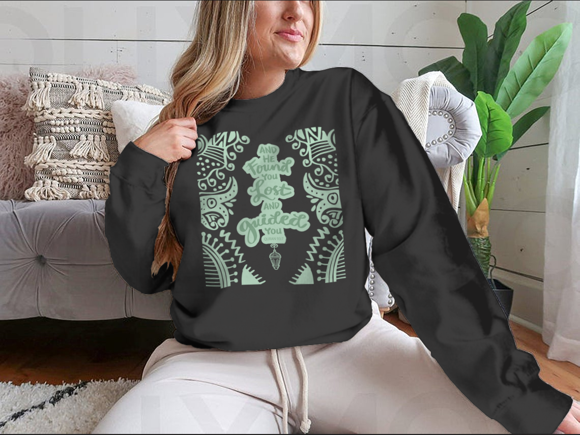 In summary, our 'And He Found You Lost And Guided You' t-shirt is a perfect blend of style, comfort, and meaningful expression. With its high-quality materials, classic fit, and attention to detail, this t-shirt is a must-have addition to your wardrobe. Embrace your faith and showcase your style with this trendy piece today!