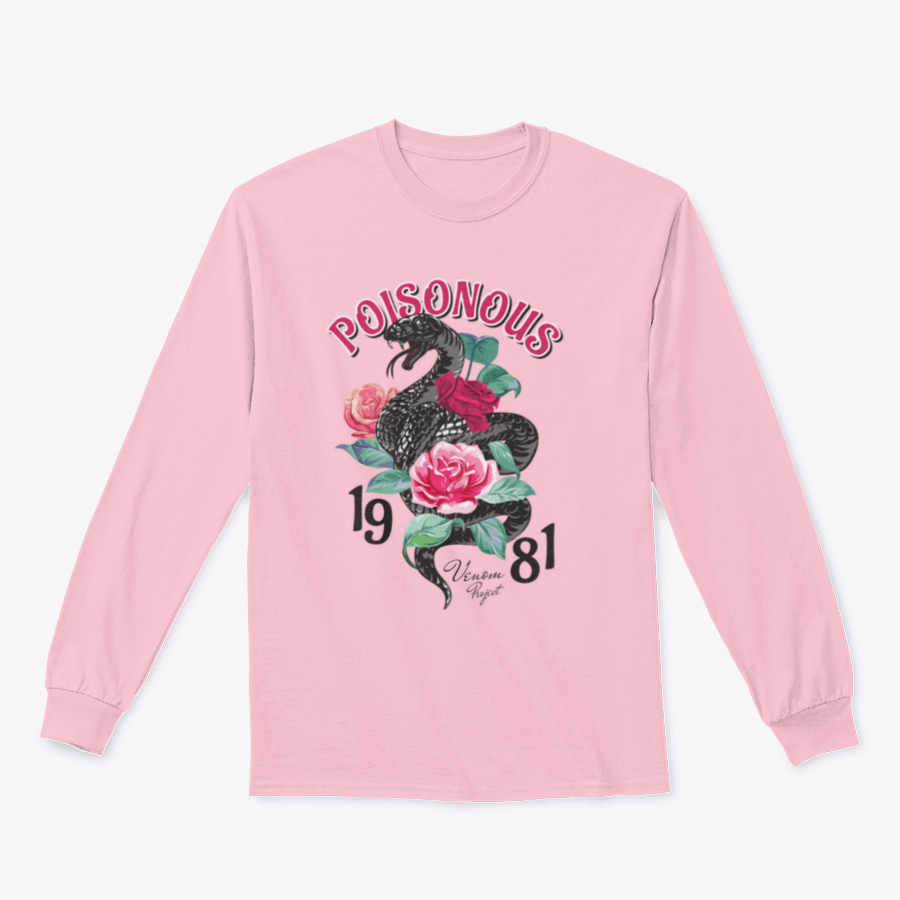 The Black Snake and Roses T-shirt features midweight fabric that ensures durability without compromising on comfort. The Sport Grey variant is made from a 90/10 cotton/polyester blend, while the Heather colors offer a 50/50 cotton/polyester mix. This variety in fabric options allows you to choose the perfect fit for your style and preference.