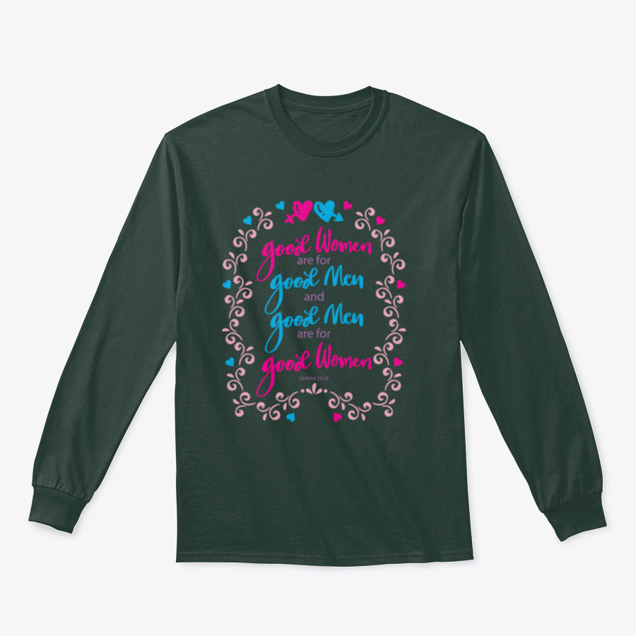 In summary, our 'Good Women Are For Good Men And Good Men Are For Good Women' Islamic t-shirt is more than just a piece of clothing; it’s a statement of values and a celebration of meaningful relationships. With its high-quality fabric, classic fit, and thoughtful design, this t-shirt is a must-have for anyone looking to express their beliefs in style.
