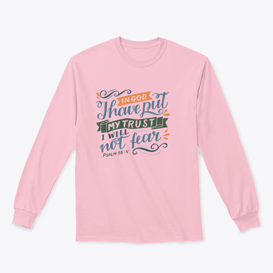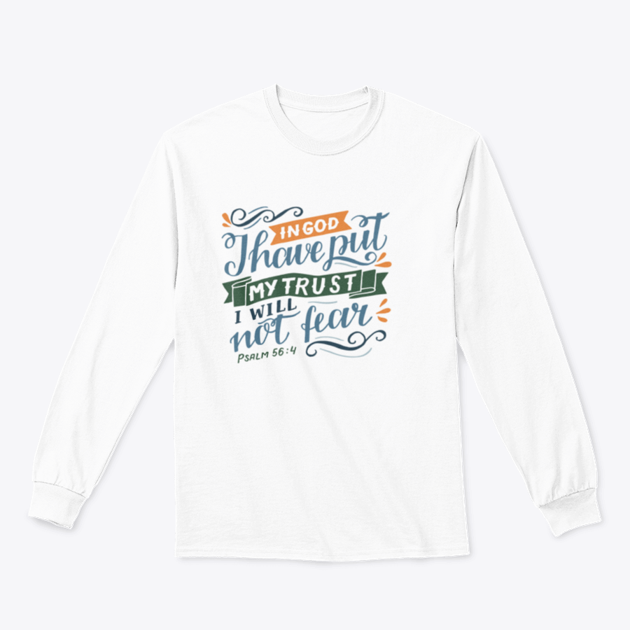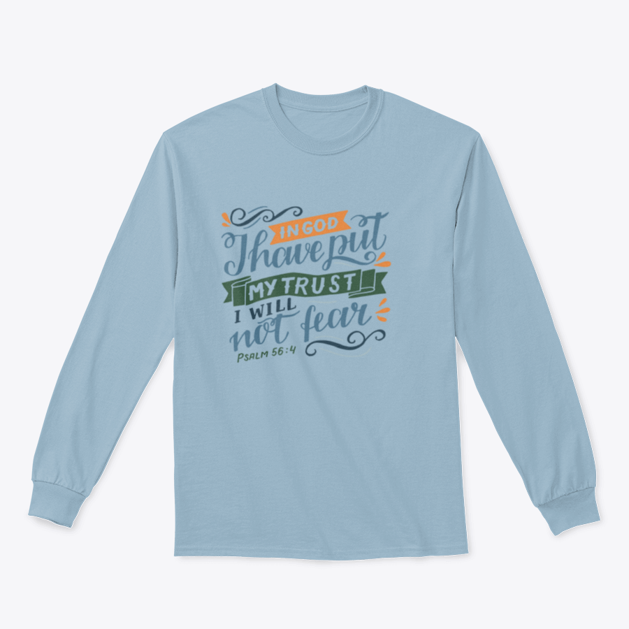 In summary, our Hand Lettering T-shirt featuring the quote 'In God I Have Put My Trust' is more than just a piece of clothing; it's a reflection of your values and style. With its high-quality materials, durable construction, and inspirational design, this T-shirt is a must-have for anyone looking to express their faith and positivity through fashion.
