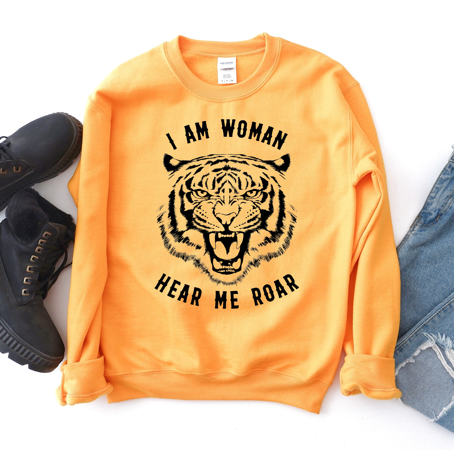 In summary, the I Am Women Hear Me Roar Sweatshirt is a must-have for anyone looking to combine comfort, style, and empowerment. With its high-quality fabric, durable construction, and versatile design, it is sure to become a favorite in your wardrobe.