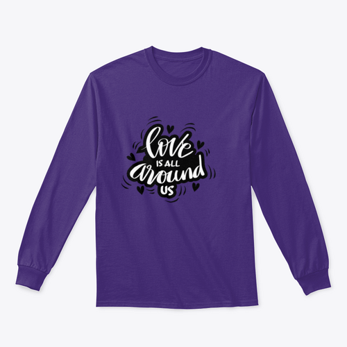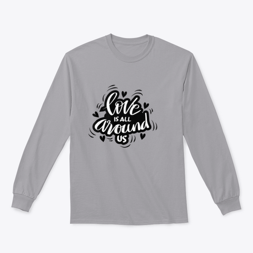 Our 'Love Is All Around Us' design comes in a classic fit that flatters all body types. Whether you're dressing up for a casual outing or lounging at home, this piece is versatile enough to suit any occasion. The classic fit allows for easy layering, making it a great addition to your seasonal wardrobe.