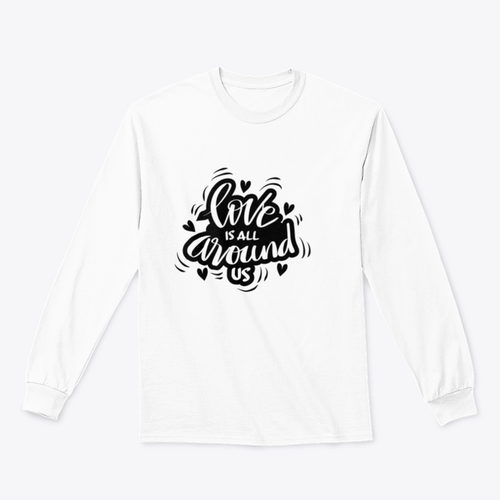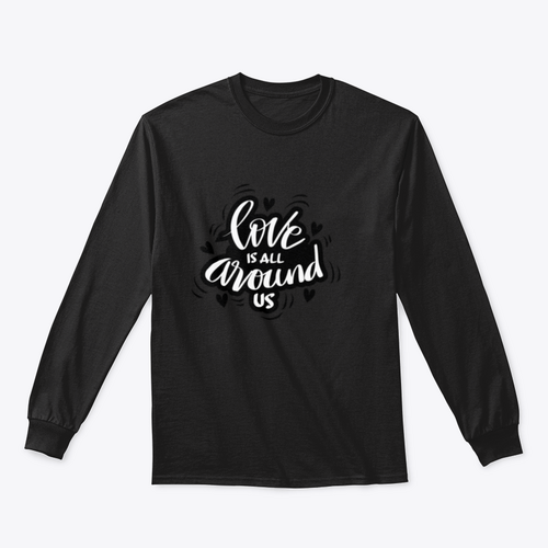 In summary, our 'Love Is All Around Us' hand lettering design combines quality materials, comfort, and a powerful message. It's more than just apparel; it's a way to express your values and inspire those around you. Make it a part of your collection today!