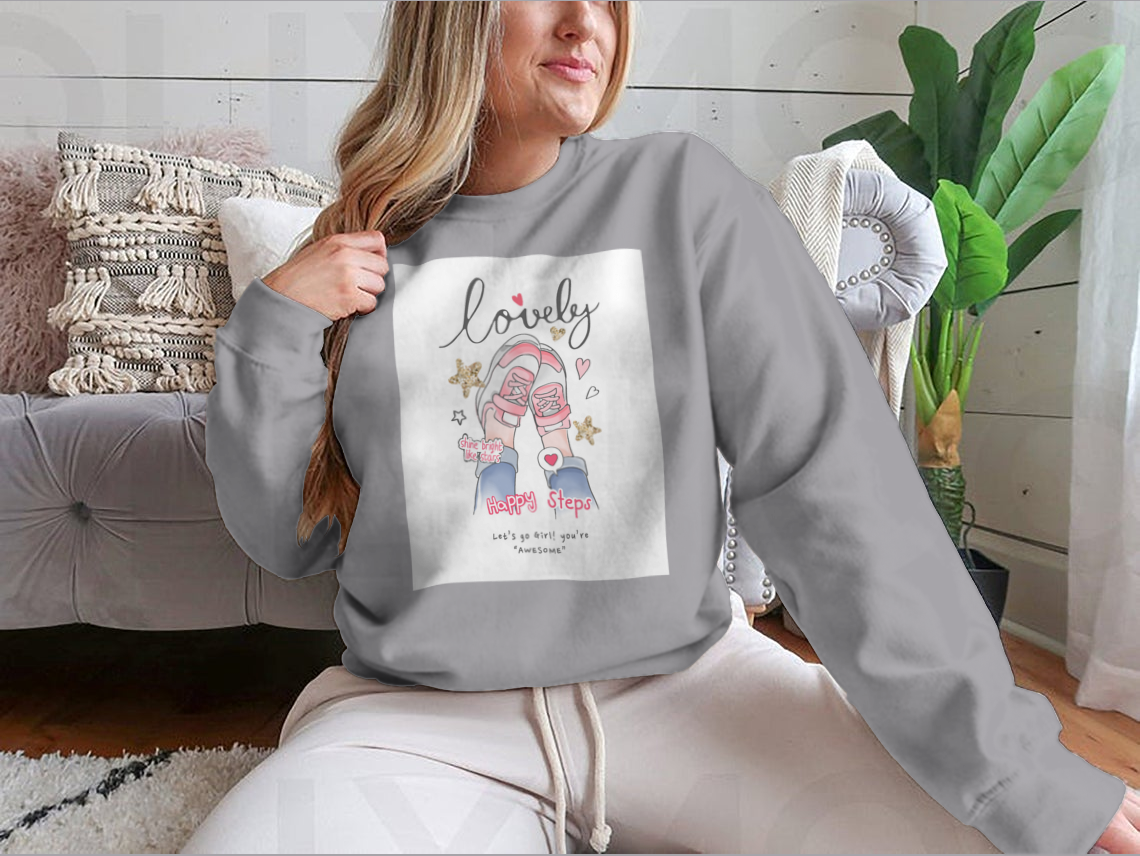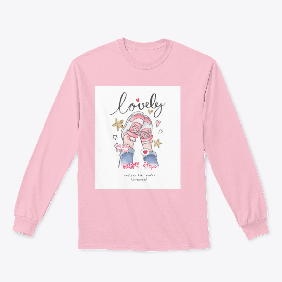 Introducing our Lovely Calligraphy Slogan, a unique and stylish piece that showcases girls' feet in trendy sneakers adorned with shimmering gold glitters. This eye-catching design is perfect for those who appreciate a blend of fashion and comfort. Made from high-quality materials, this product is not just a statement piece but also a practical addition to your wardrobe.