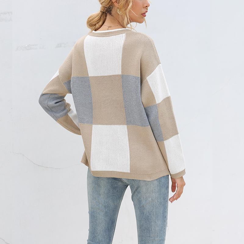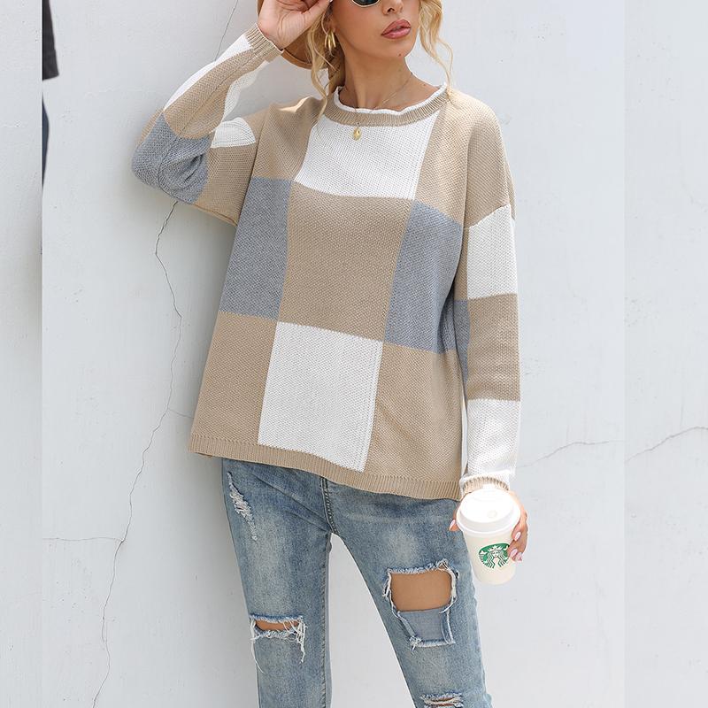Introducing our Patchwork Casual Loose Sweater for women, a perfect blend of style and comfort. This sweater features a trendy plaid pattern that adds a touch of sophistication to your casual wardrobe. Made from high-quality cotton and polyester, it ensures a soft and breathable feel, making it ideal for all-day wear.